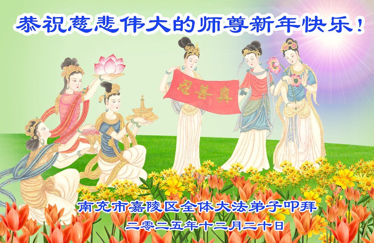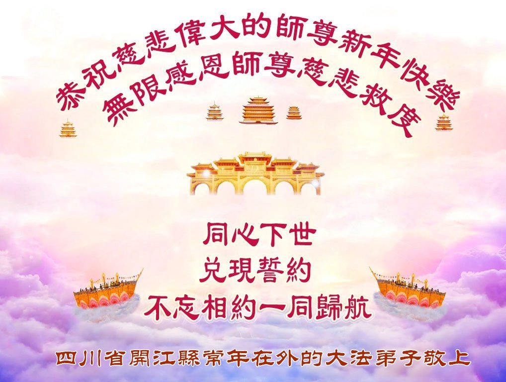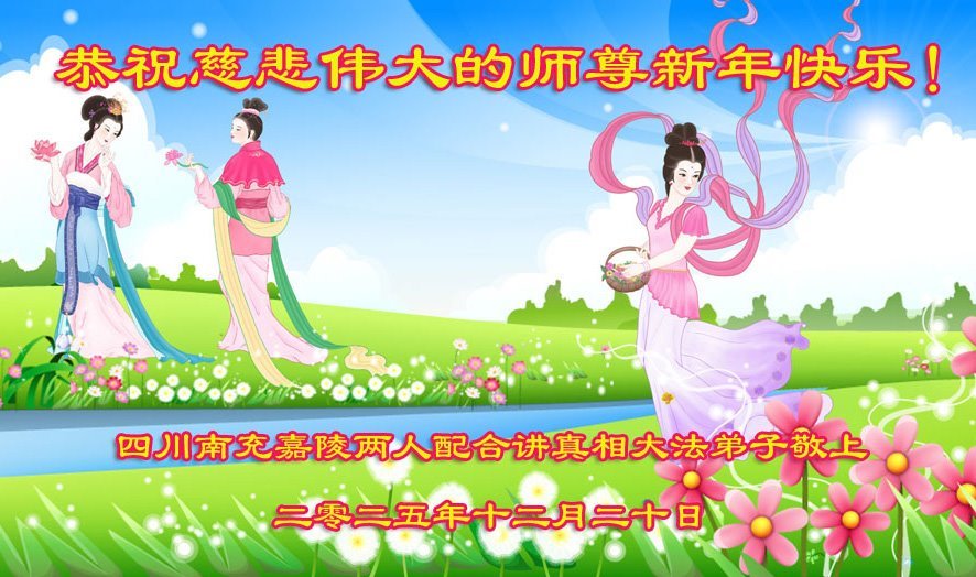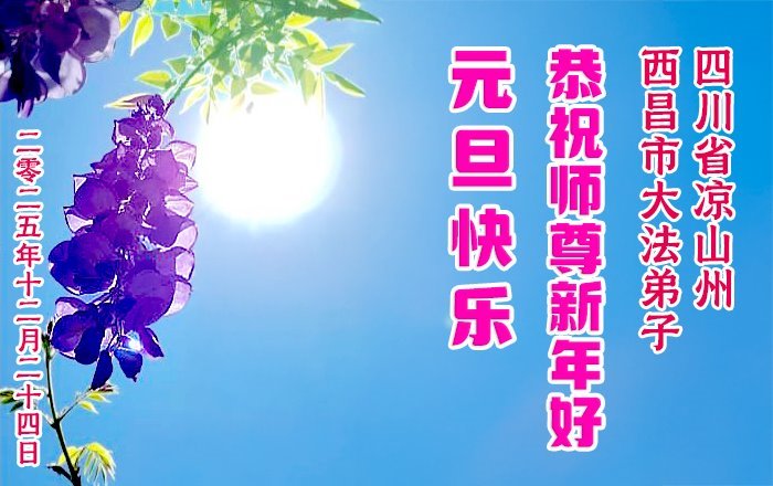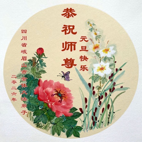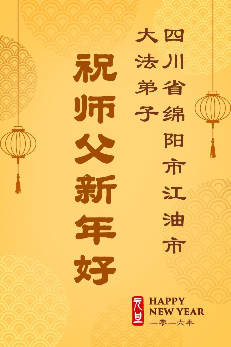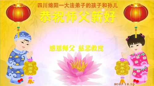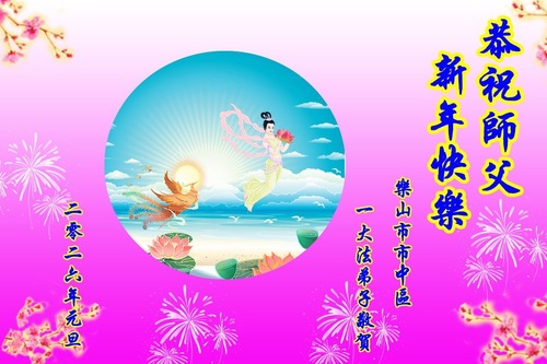 (Minghui.org) Zu Neujahr senden Falun-Dafa-Praktizierende auf der ganzen Welt traditionell Neujahrsgrüße, Grußkarten, Gedichte und Fotos an die Minghui-Website. Damit wünschen sie ihrem verehrten Meister Li Hongzhi ein frohes neues Jahr und bringen dem Meister ihre Dankbarkeit für die barmherzige Errettung zum Ausdruck. Sie geloben, in ihrer Kultivierung fleißig voranzukommen und noch mehr Lebewesen zu erretten. Im Folgenden veröffentlichen wir einen Teil dieser Grüße aus Sichuan: