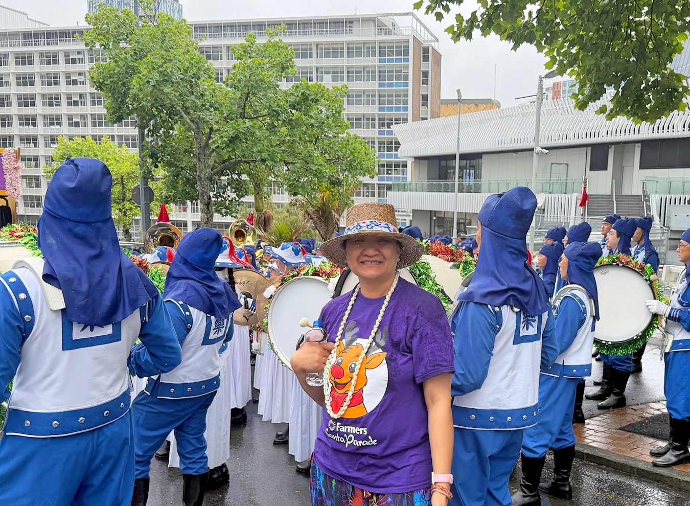 Kamryn, der bei der Auckland Farmers Christmas Parade für die Sicherheit sorgte, erklärte: „Meine Urgroßmutter ist Chinesin, deshalb freue ich mich, Chinesen bei dieser Parade zu sehen. Die Kostüme der Band sind wunderschön.“