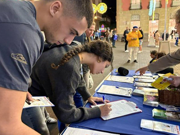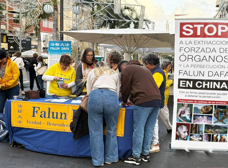 (Minghui.org) Am 21. November 2025 fand auf der Plaza de Candelaria auf der spanischen Insel Teneriffa eine Informationsveranstaltung zu Falun Dafa statt. Zahlreiche Einheimische und Touristen nutzten die Gelegenheit, mehr darüber zu erfahren und eine Petition gegen die Verfolgung von Praktizierenden in China zu unterzeichnen.