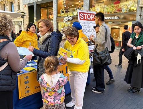 Auf dem Platz hatten Praktizierende Informationstafeln aufgebaut und stellten Passanten die traditionelle Kultivierungspraxis Falun Dafa vor. Sie erläuterten die Leitprinzipien Wahrhaftigkeit, Güte und Nachsicht, nach denen sich die Praktizierenden im Alltag richten, und informierten über die seit 26 Jahren anhaltende Verfolgung durch die Kommunistische Partei Chinas (KPCh).