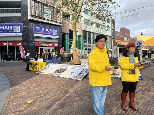 Lelystad, die Hauptstadt der niederländischen Provinz Flevoland, ist zugleich deren größte Stadt und zählt zu den jüngsten Siedlungen des Landes. Zur Mittagszeit errichteten Falun-Dafa-Praktizierende ihren Informationsstand in der De-Promesse-Straße, wo sie die Falun-Dafa-Übungen vorführten, Informationsmaterial verteilten und Gespräche mit den Passanten führten, während sie dabei über die Verfolgung durch die Kommunistische Partei Chinas (KPCh) informierten.