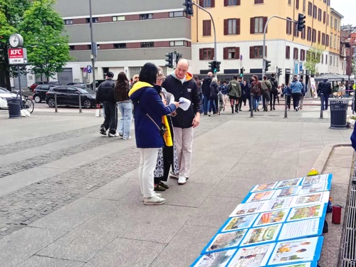 Am Sonntag, 13. April, trafen sich die Praktizierenden im Zentrum von Mailand zu einer Aktion, bei der sie über die Hintergründe der Verfolgung informierten und Unterschriften für eine Petition zur Beendigung des Organraubs sammelten.