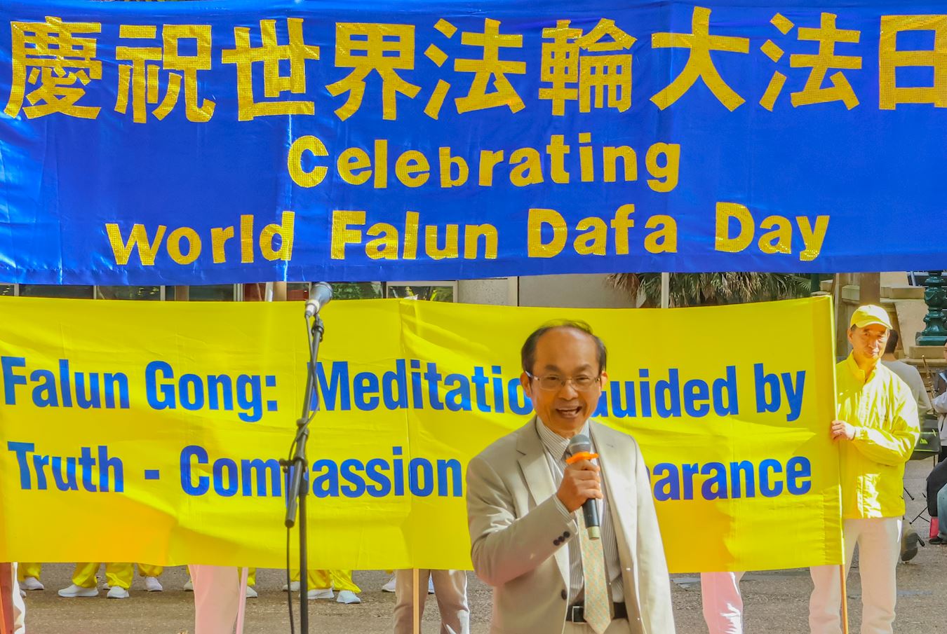 Dr. Feng Chongyi, Sinologe an der University of Technology Sydney, konstatierte: „Ich freue mich sehr, an den Feierlichkeiten zum 33. Jahrestag der Verbreitung von Falun Dafa teilnehmen zu dürfen, und möchte Falun Dafa meine Anerkennung aussprechen. Ich grüße die Falun-Dafa-Praktizierenden!