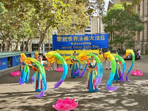 Praktizierende veranstalteten vor dem Rathaus in Sydney eine Veranstaltung zum Welt-Falun-Dafa-Tag