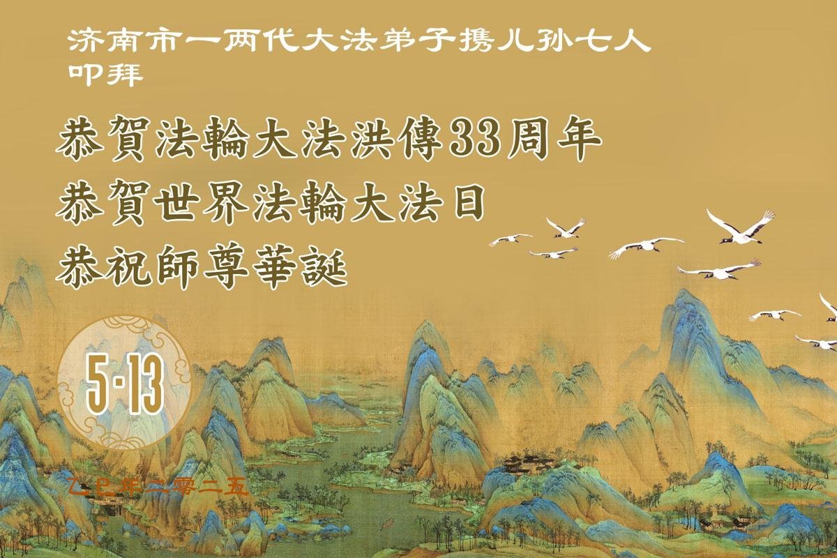 Falun-Dafa-Praktizierende in der Stadt Jinan feiern den Welt-Falun-Dafa-Tag und gratulieren dem verehrten Meister respektvoll zum Geburtstag (21 Grüße)