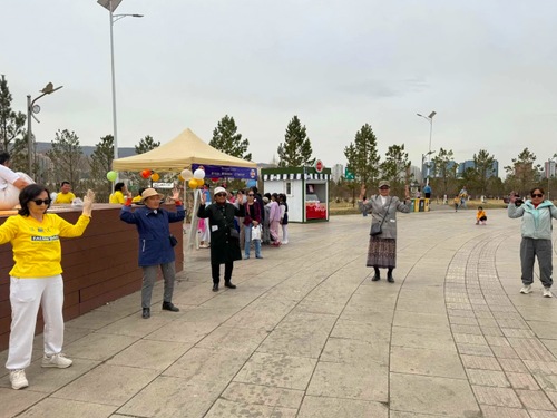 (Minghui.org) Am 11. Mai 2025 versammelten sich Falun-Dafa-Praktizierende im Nationalpark von Ulaanbaatar zu gemeinsamen Übungen und Darbietungen, um den 33. Jahrestag der Einführung dieser spirituellen Kultivierungsmethode feierlich zu begehen und Meister Li zu seinem Geburtstag ihre besten Wünsche zu übermitteln.