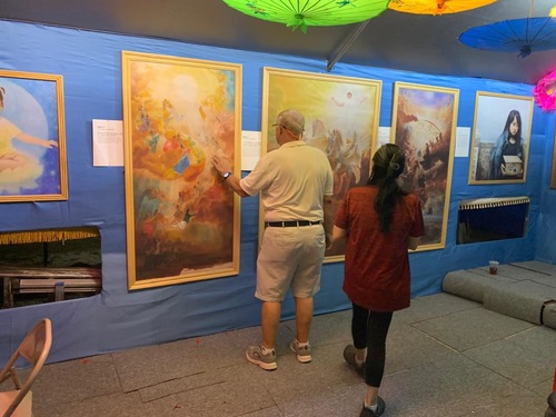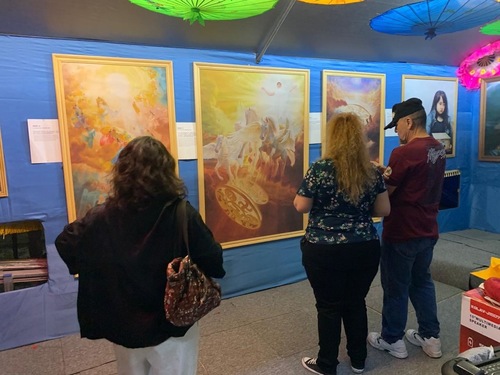 Die Ausstellung „Die Kunst von Zhen Shan Ren“ (Wahrhaftigkeit, Güte, Nachsicht), welche die Schönheit von Falun Dafa widerspiegelt, fiel den Festivalbesuchern besonders ins Auge. Sie waren begeistert von den wunderschönen Farben und der Heiligkeit, die von den Gemälden ausgingen.