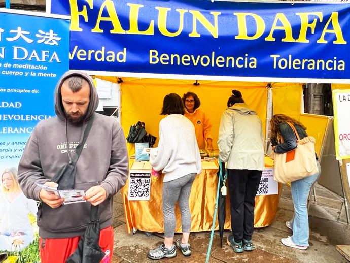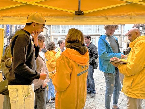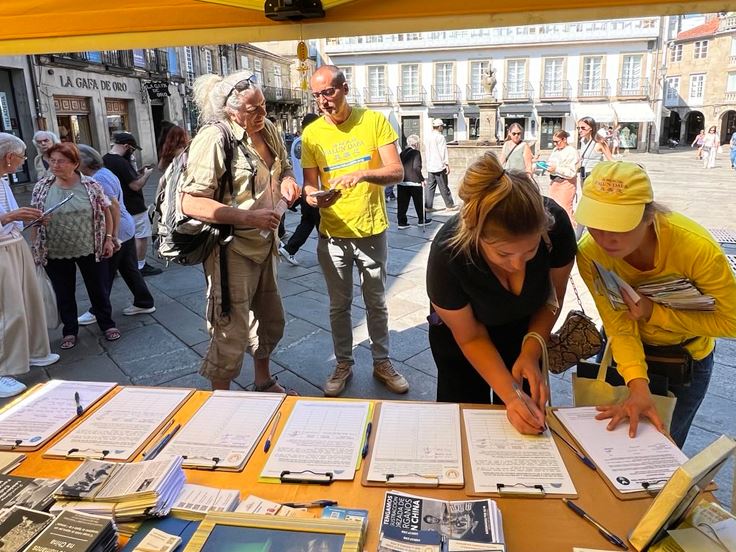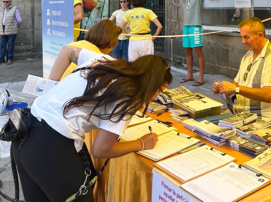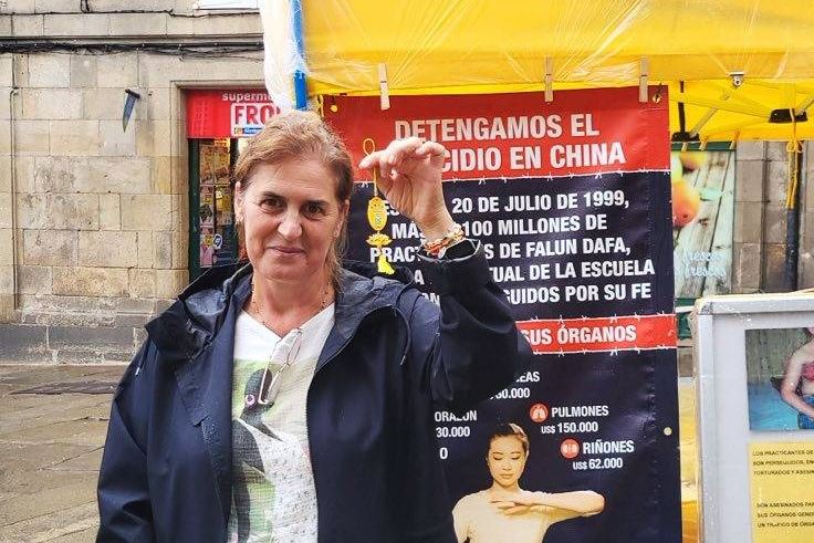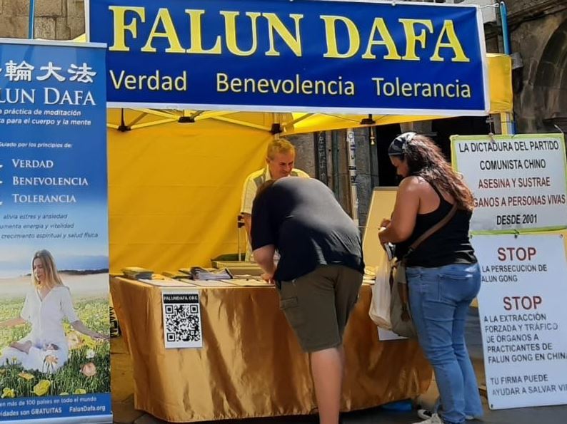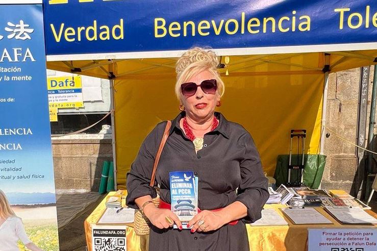 Cristina, die in Galicien lebt, erzählte einem Praktizierenden, dass sie sich sehr für Qigong und Tai Chi interessiere. „Aber in den 1990er Jahren unterrichtete in Spanien niemand Qigong.“ Sie wollte von dem Praktizierenden wissen, ob Falun Gong dasselbe sei wie Falun Dafa. Während einer Reise nach China vor acht Jahren habe sie von einem Praktizierenden erfahren, dass das KPCh-Regime spirituellen Glauben nicht dulde. Als sie die Bilder auf den Schautafeln sah, die zeigten, wie Praktizierende von der KPCh brutal verfolgt wurden, unterschrieb sie sofort die Petition, um die Bemühungen zur Aufdeckung der Verfolgung zu unterstützen.