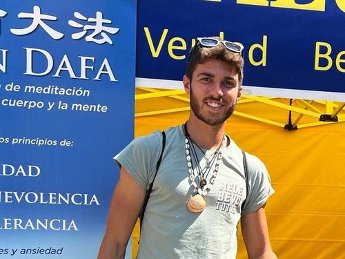Diego unterschrieb die Petition in der Hoffnung, so seinen Teil zur Beendigung der Verfolgung beitragen zu können. Anschließend bat er darum, die Übungen kennenzulernen. Nachdem er sie ausprobiert hatte, empfand er sie als sehr wohltuend. Er informierte sich weiter über Falun Dafa und erklärte, dass er nach seiner Rückkehr einen örtlichen Übungsplatz aufsuchen werde.