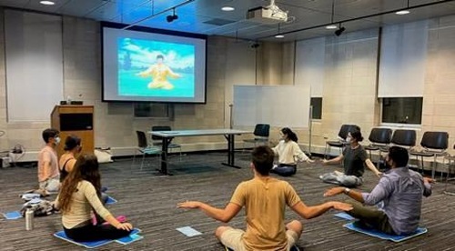 Eric, der Vorsitzende des Falun-Dafa-Clubs, berichtete, der Club sei 1999 gegründet worden. Zu den Hauptaktivitäten würden gehören: das Praktizieren der Übungen, Studium der Falun-Dafa-Bücher, die Teilnahme an Ausstellungen, gemeinsames Ansehen von Filmen zu Menschenrechtsverletzungen, das Beantragen von Fördermitteln für Gruppenkarten sowie das Bekanntmachen der Studenten und Alumni mit Shen Yun Performing Arts im Lincoln Center.