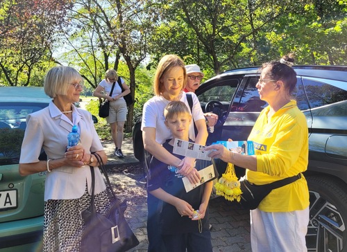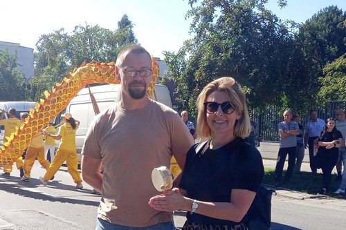 Paweł erklärte: „Ich glaube, dass die Werte von Falun Dafa – Wahrhaftigkeit, Güte und Nachsicht – von wesentlicher Bedeutung sind. Wir sollten sie fleißig lernen und in unserem täglichen Leben praktizieren.“ Das Paar dankte den Praktizierenden für ihre Teilnahme und äußerte: „Wir wünschen Ihnen gute Gesundheit und hoffen, dass Sie weiterhin standhaft bleiben.“