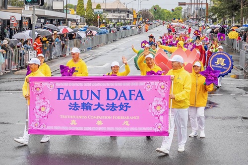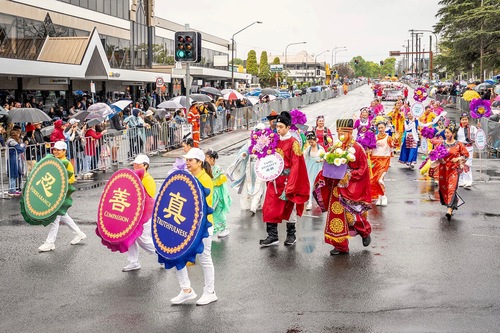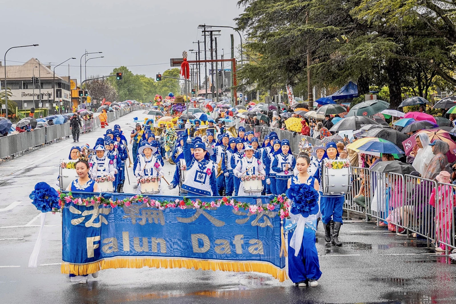 (Minghui.org) Am 20. September 2025 waren Falun-Dafa-Praktizierende eingeladen, an der großen Blumenparade in Toowoomba (Queensland) teilzunehmen. Trotz leichten Nieselregens säumten rund 80.000 Zuschauer die Straßen, um die größte und traditionsreichste Blumenparade der südlichen Hemisphäre zu erleben. Unter dem diesjährigen Motto „Blumenrausch“ errangen die Falun-Dafa-Praktizierenden den zweiten Preis in ihrer Kategorie.