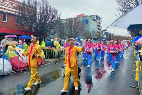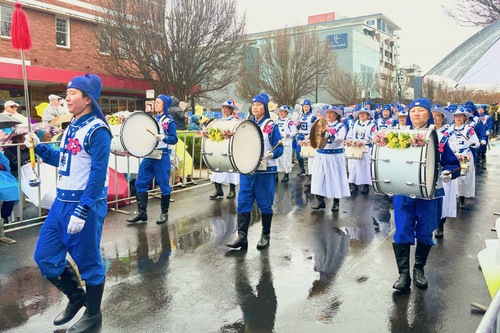 Falun-Dafa-Praktizierende nehmen an der großen Blumenparade in Toowoomba teil