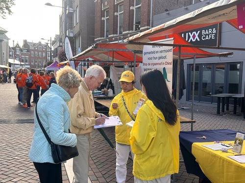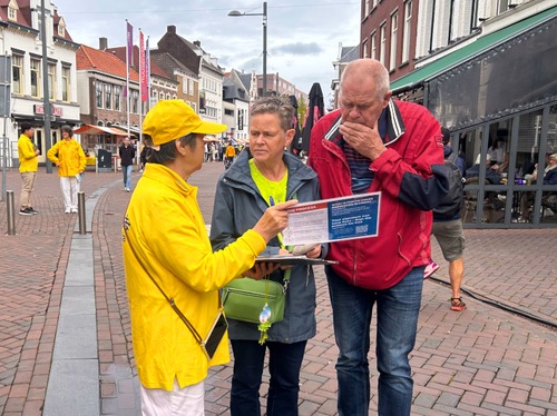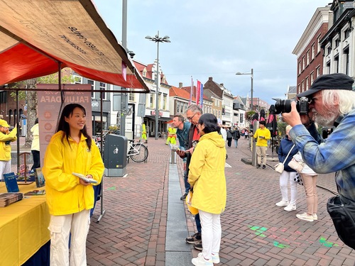 Willem Lagos, Fotojournalist für ein Lokalmagazin, fühlte sich vom Stand der Praktizierenden wie magisch angezogen. „Gelb ist eine sehr helle und schöne Farbe“, fand er. Und fügte dann hinzu: „Ich kann spüren, dass Sie eine Gruppe von freundlichen, hingebungsvollen und gütigen Menschen sind.“ Als er von der anhaltenden Verfolgung in China erfuhr, meinte er fassungslos: „Das ist schrecklich. Es ist äußerst schrecklich, dass die KPCh so etwas tut! Wir hatten davon keine Kenntnis.“ Er lobte die Praktizierenden dafür, dass sie die Verfolgung durch die KPCh aufdeckten: „Was Sie tun, ist sehr gut!“