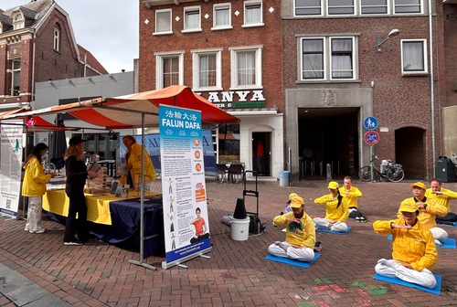 Sie stellten ihren Stand auf dem Blumenmarkt auf, führten die Falun-Dafa-Übungen vor, verteilten Flyer und informierten die Menschen über die Verfolgung der Praktizierenden in China durch die Kommunistische Partei (KPCh). Mit einer Petition, die ein Ende dieser Gräueltaten fordert, erbaten sie die Unterstützung der Passanten. Viele Menschen kamen zum Stand: Manche schauten den Praktizierenden bei den Übungen zu, während andere sich ihnen anschlossen und die Übungsbewegungen nachmachten. Viele Passanten unterschrieben auch die Petition.