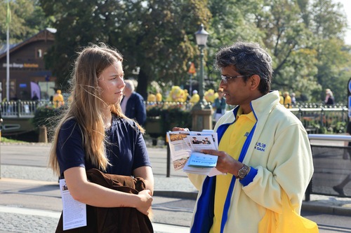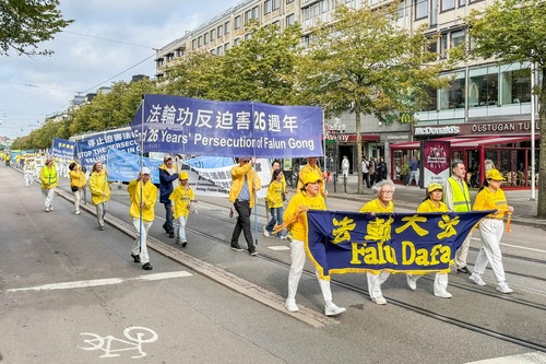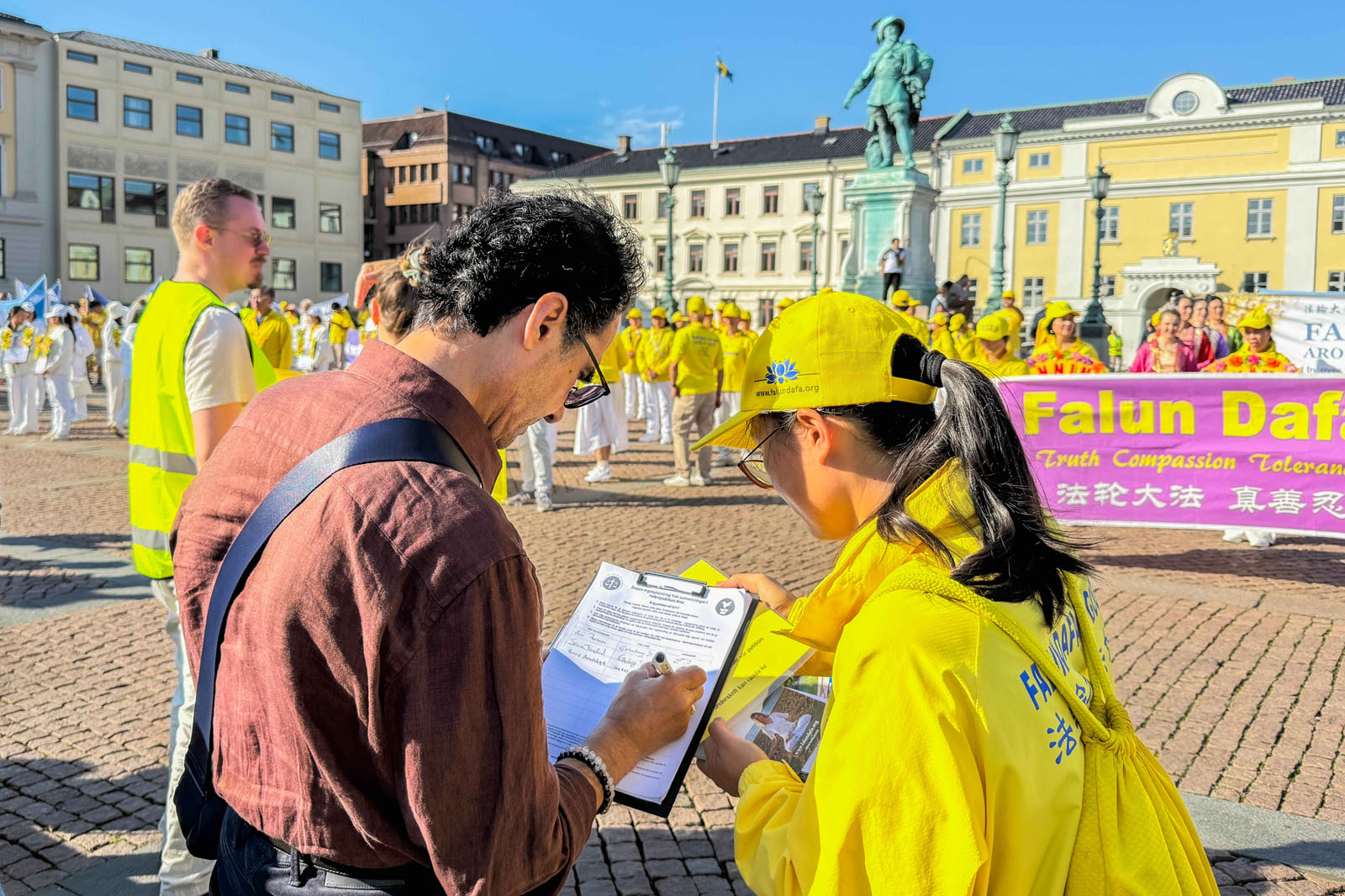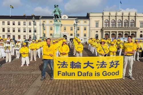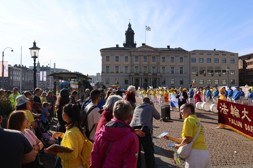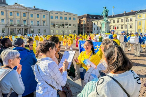 (Minghui.org) Falun-Dafa-Praktizierende veranstalteten am 20. September 2025 eine Kundgebung auf dem Gustaf-Adolf-Platz im Zentrum von Göteborg, Schweden. Damit begingen sie den 30. Jahrestag der Einführung von Falun Dafa in Schweden und Europa. Zudem schärfte die Veranstaltung das Bewusstsein für die 26-jährige Verfolgung durch die Kommunistische Partei Chinas (KPCh).