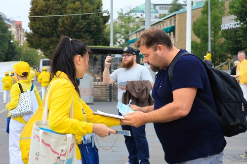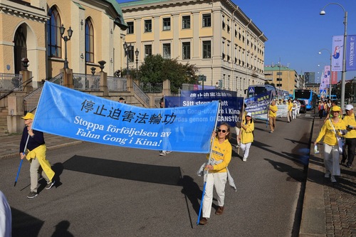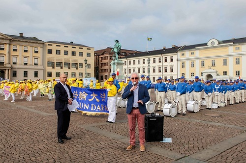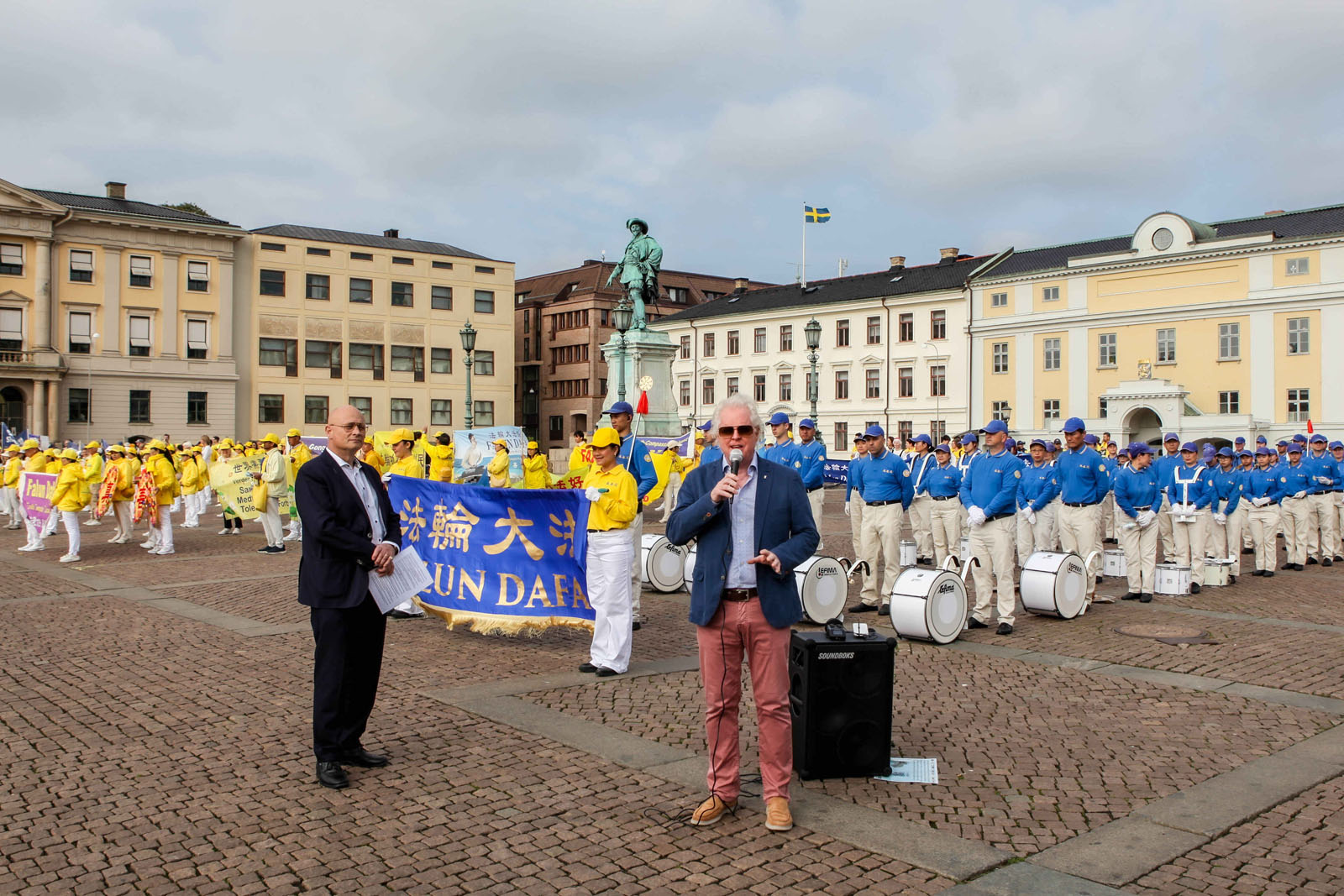 Hans Rothenberg, ehemaliger Abgeordneter des schwedischen Parlaments, sprach auf der Kundgebung und machte auf die Verfolgung durch die KPCh und den staatlich geförderten Organraub aufmerksam. Er engagiert sich schon seit Langem für die Beendigung der Verfolgung von Falun Dafa.