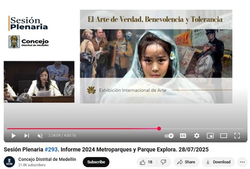 Die internationale Ausstellung „Die Kunst von Wahrhaftigkeit, Güte und Nachsicht“ im Stadtrat von Medellín und der Versammlung von Antioquia