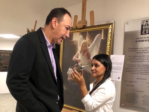 Stadtrat Luis Guillermo Vélez Álvarez war einer der ersten Unterstützer der Kunstausstellung und trug dazu bei, dass die „Kunst von Wahrhaftigkeit, Güte und Nachsicht“ in den Stadtrat von Medellín gebracht wurde.