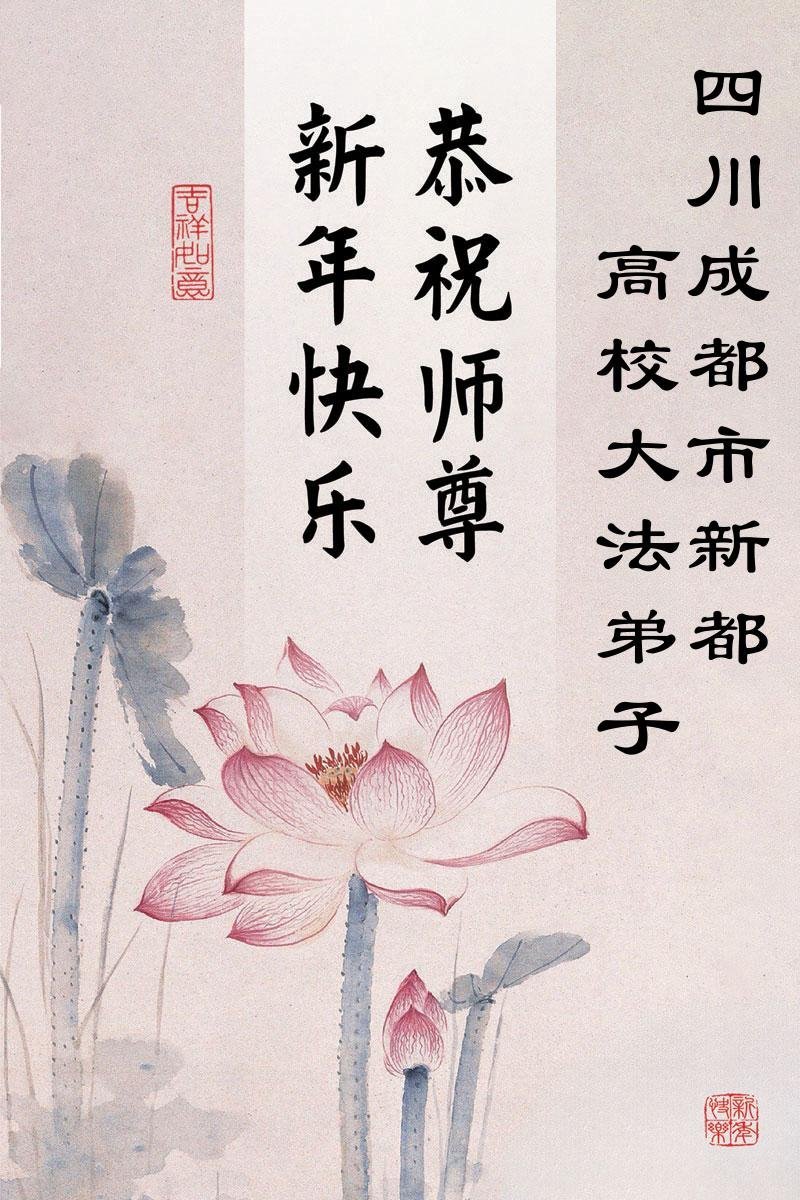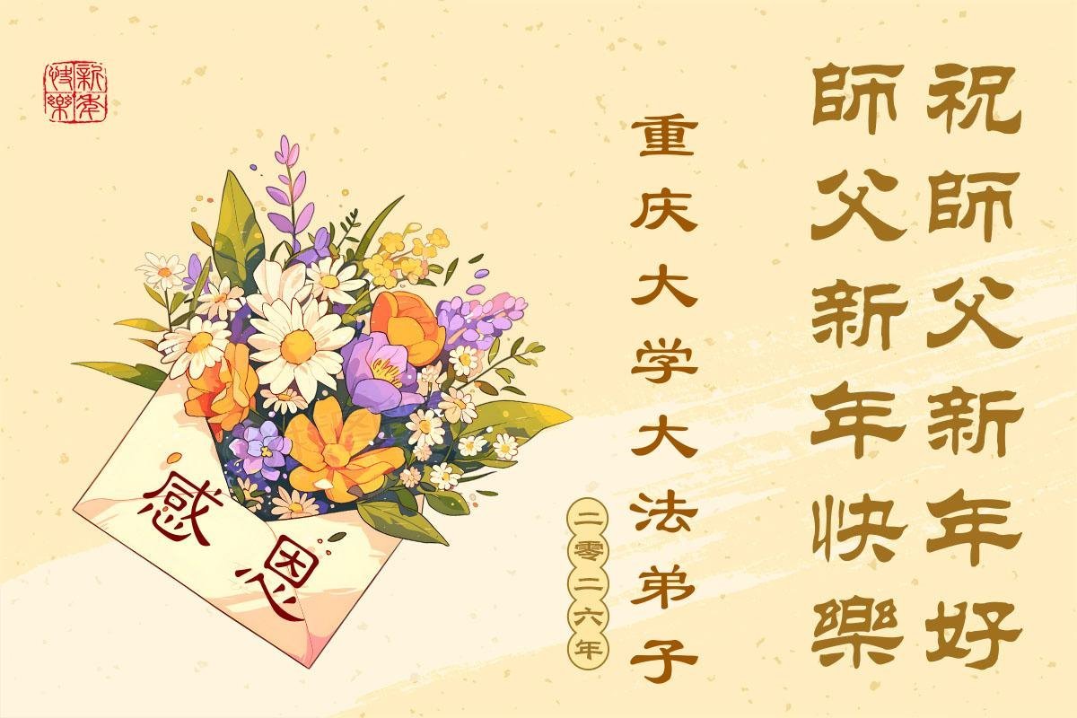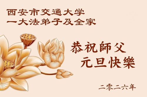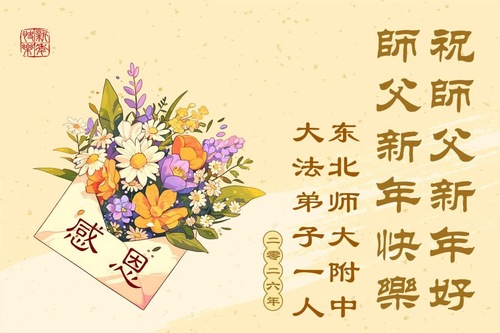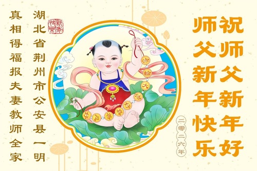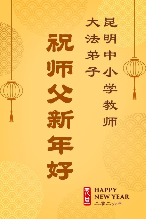 (Minghui.org) Zu Neujahr senden Falun-Dafa-Praktizierende auf der ganzen Welt traditionell Neujahrsgrüße, Grußkarten, Gedichte und Fotos an die Minghui-Website. Damit wünschen sie ihrem verehrten Meister Li Hongzhi ein frohes neues Jahr und bringen dem Meister ihre Dankbarkeit für die barmherzige Errettung zum Ausdruck. Sie geloben, in ihrer Kultivierung fleißig voranzukommen und noch mehr Lebewesen zu erretten.
