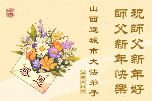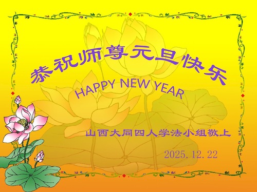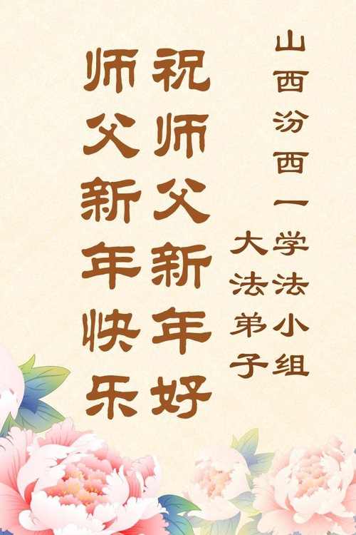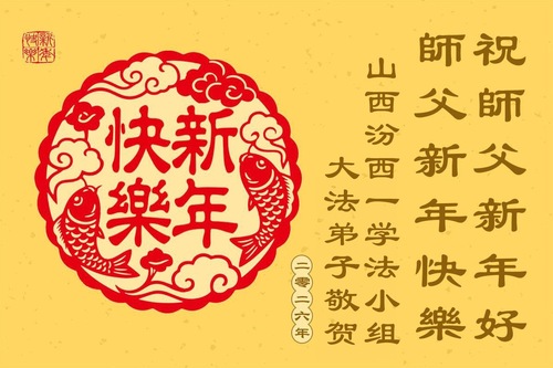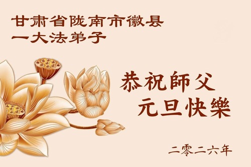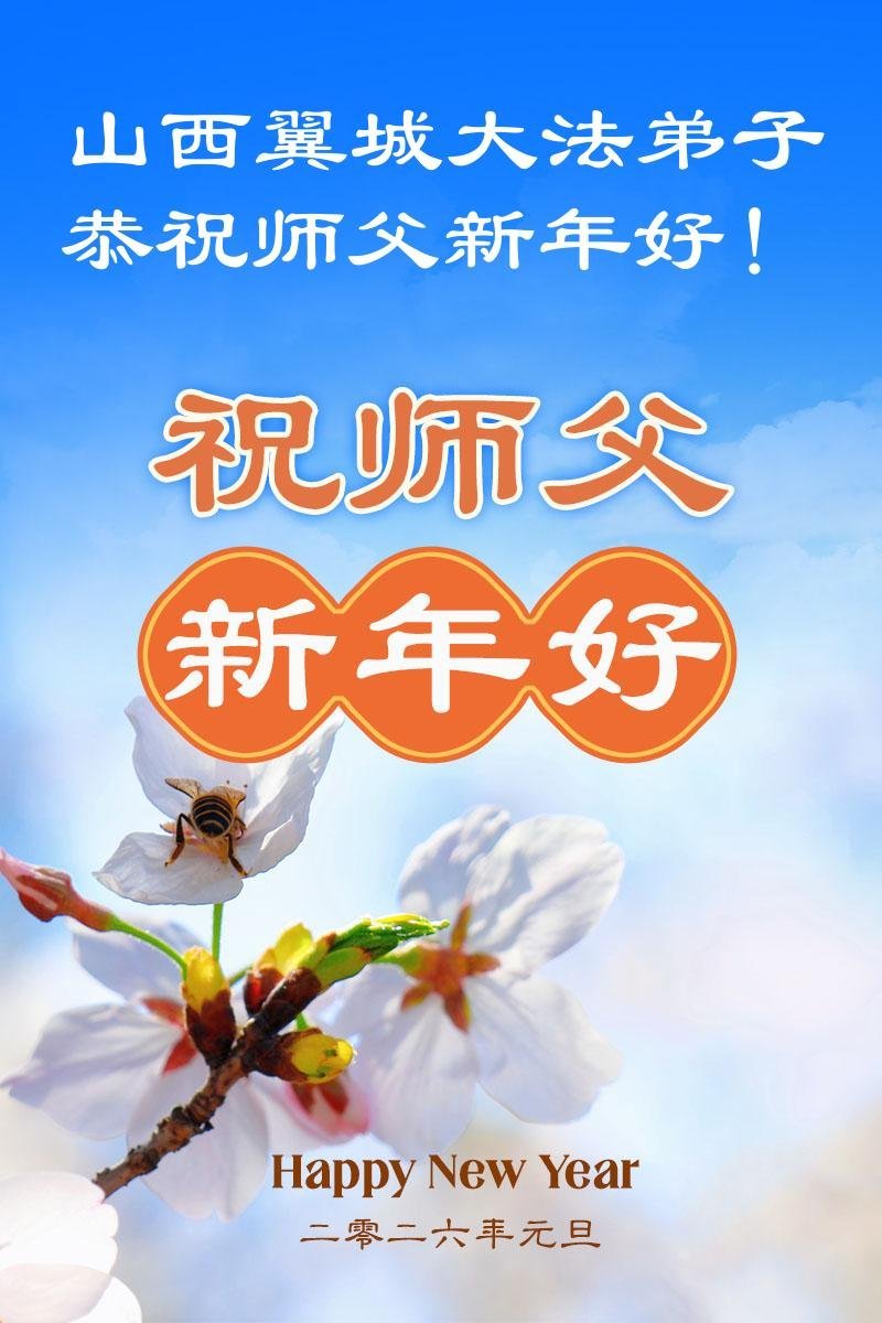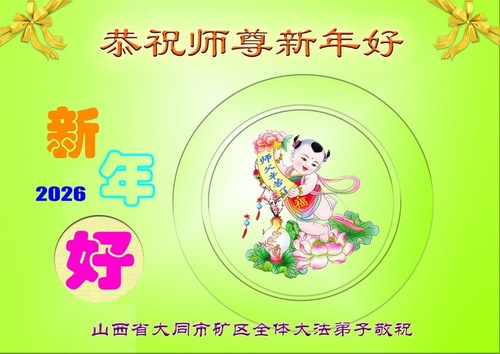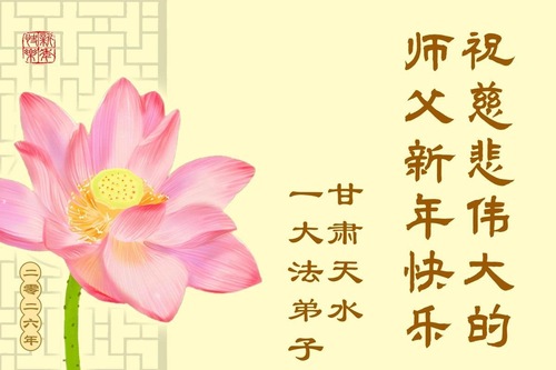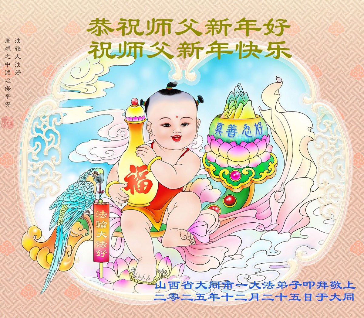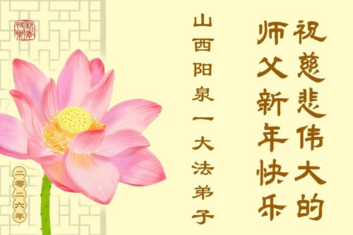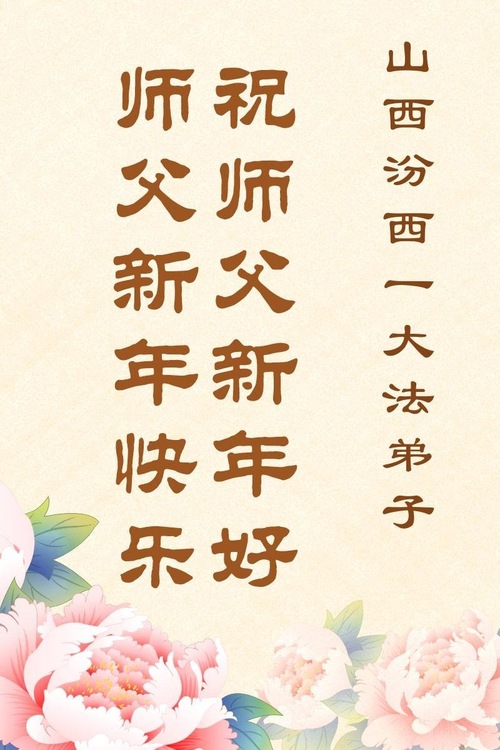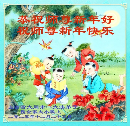 (Minghui.org) Zu Neujahr senden Falun-Dafa-Praktizierende auf der ganzen Welt traditionell Neujahrsgrüße, Grußkarten, Gedichte und Fotos an die Minghui-Website. Damit wünschen sie ihrem verehrten Meister Li Hongzhi ein frohes neues Jahr und bringen dem Meister ihre Dankbarkeit für die barmherzige Errettung zum Ausdruck. Sie geloben, in ihrer Kultivierung fleißig voranzukommen und noch mehr Lebewesen zu erretten. Im Folgenden veröffentlichen wir einen Teil dieser Grüße aus Shanxi, Shaanxi und Gansu: