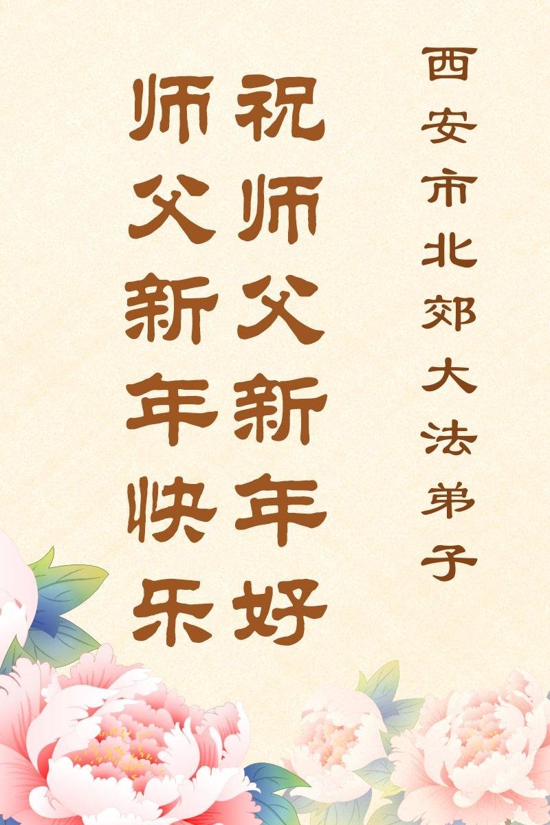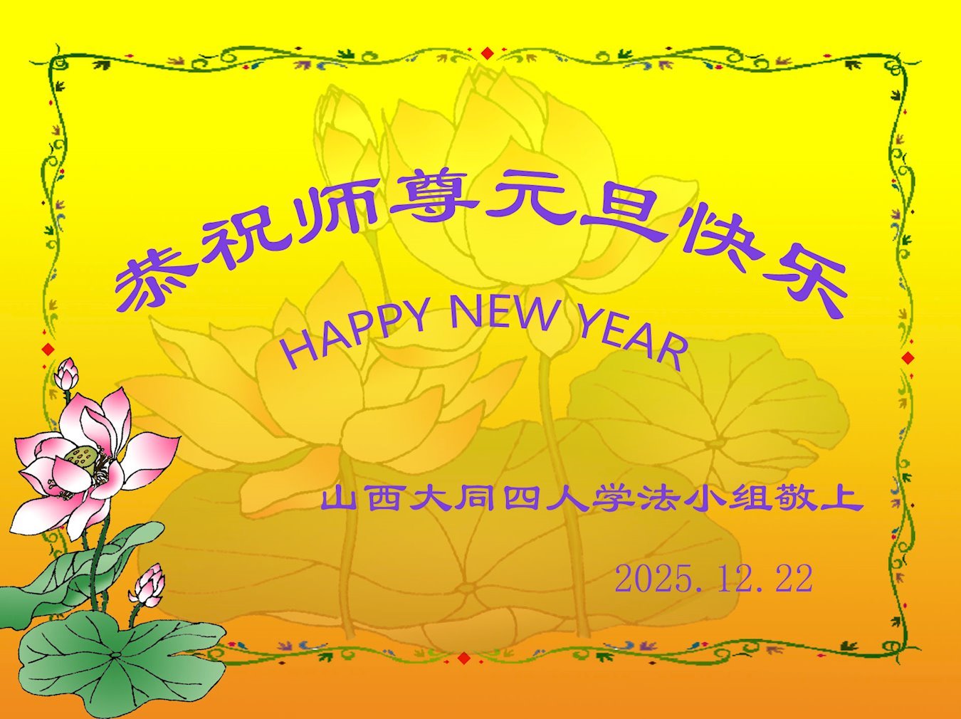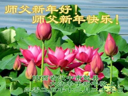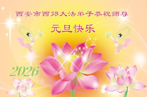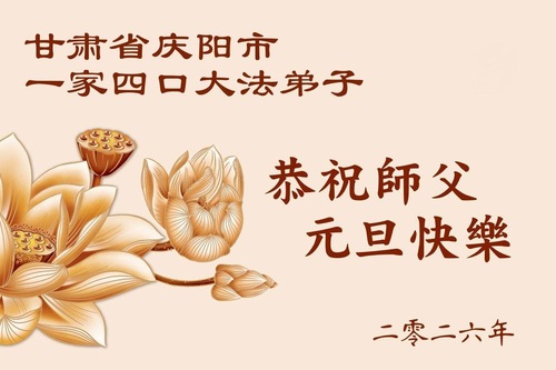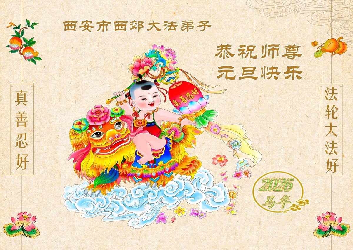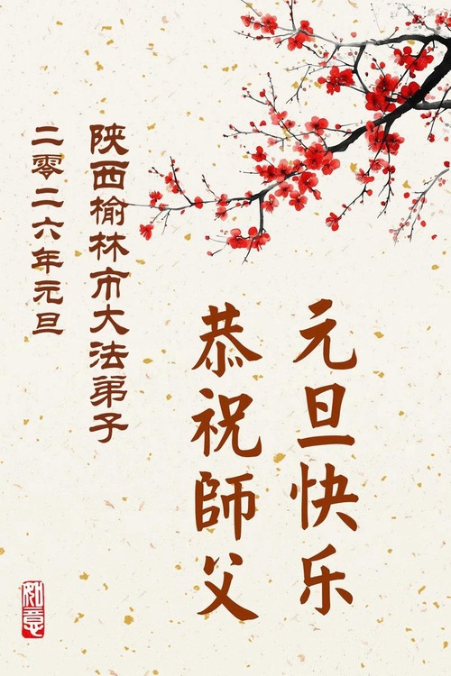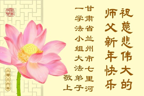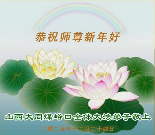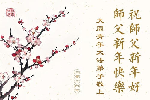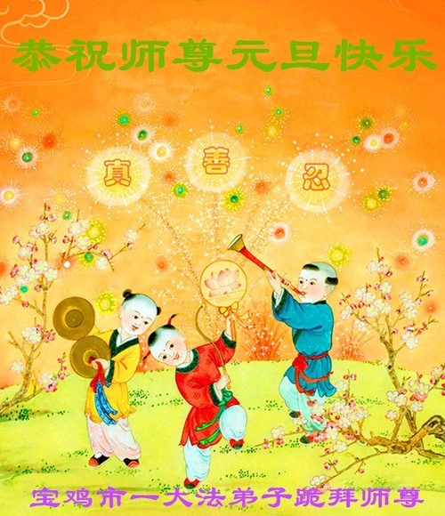(Minghui.org) Zu Neujahr senden Falun-Dafa-Praktizierende auf der ganzen Welt traditionell Neujahrsgrüße, Grußkarten, Gedichte und Fotos an die Minghui-Website. Damit wünschen sie ihrem verehrten Meister Li Hongzhi ein frohes neues Jahr und bringen dem Meister ihre Dankbarkeit für die barmherzige Errettung zum Ausdruck. Sie geloben, in ihrer Kultivierung fleißig voranzukommen und noch mehr Lebewesen zu erretten. Im Folgenden veröffentlichen wir einen Teil dieser Grüße aus Shanxi, Shaanxi und Gansu: