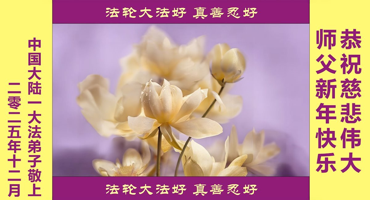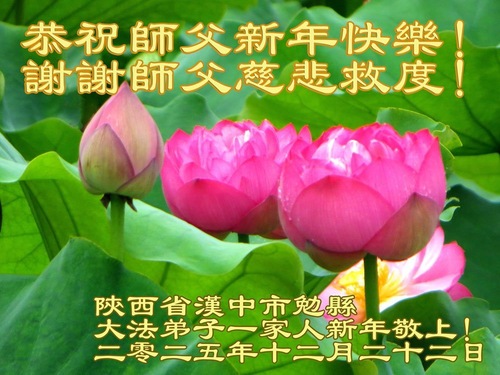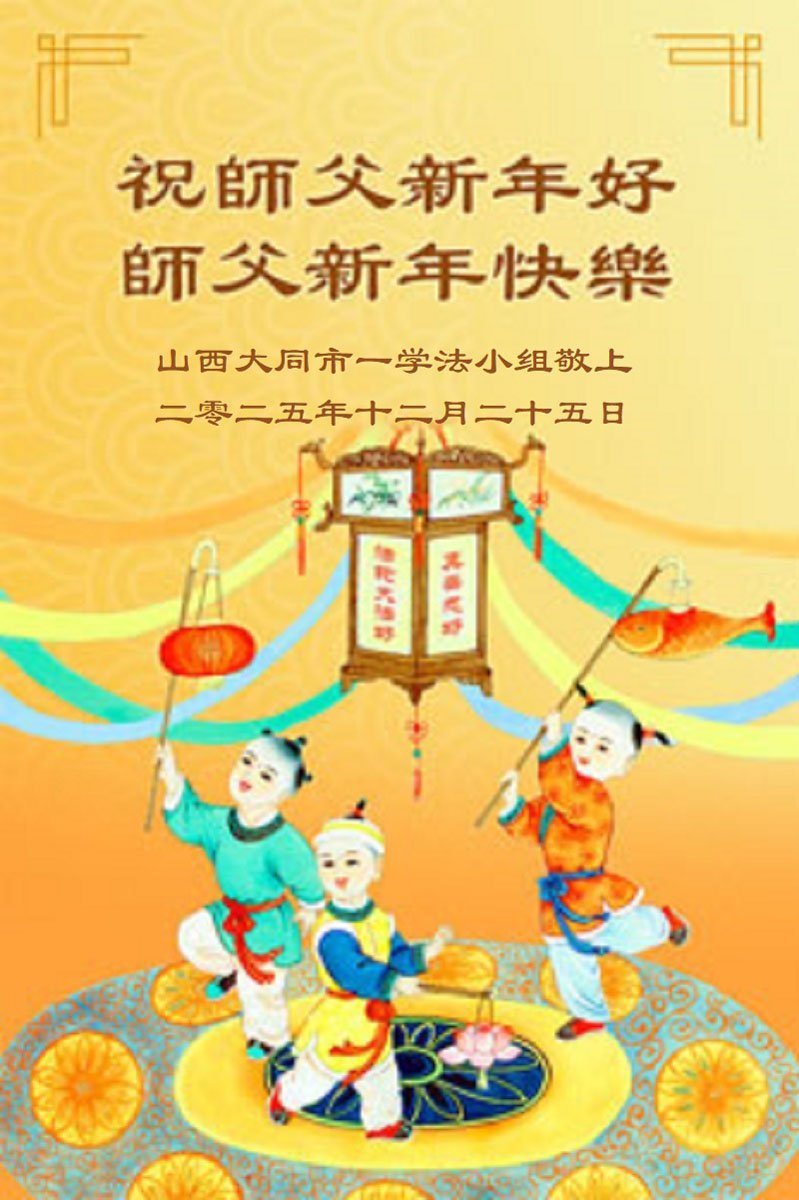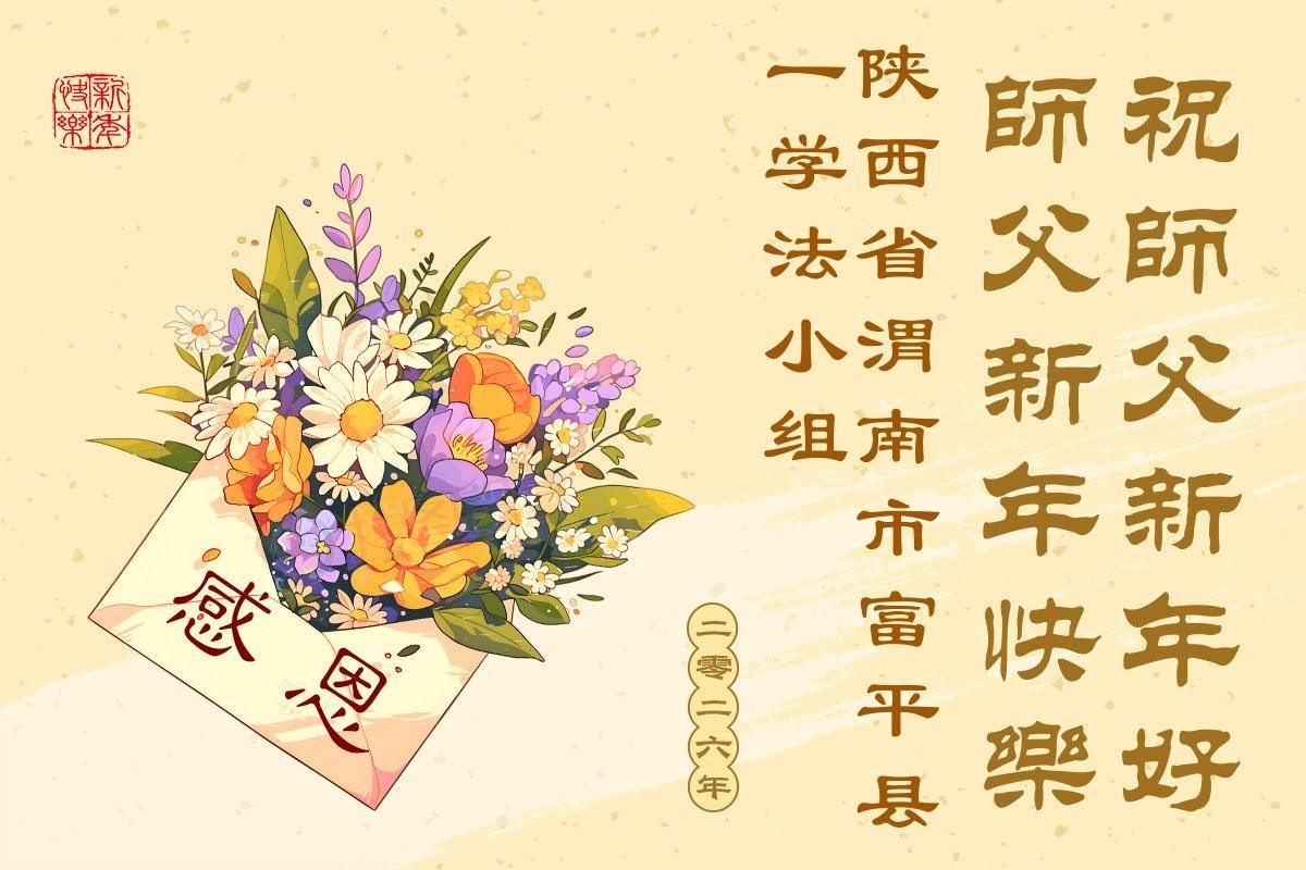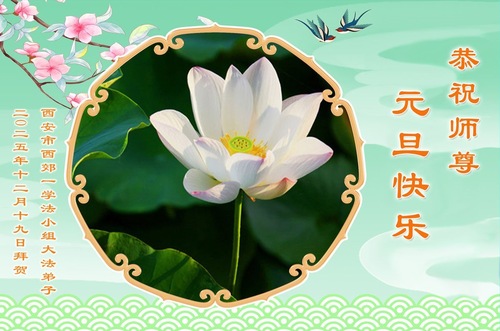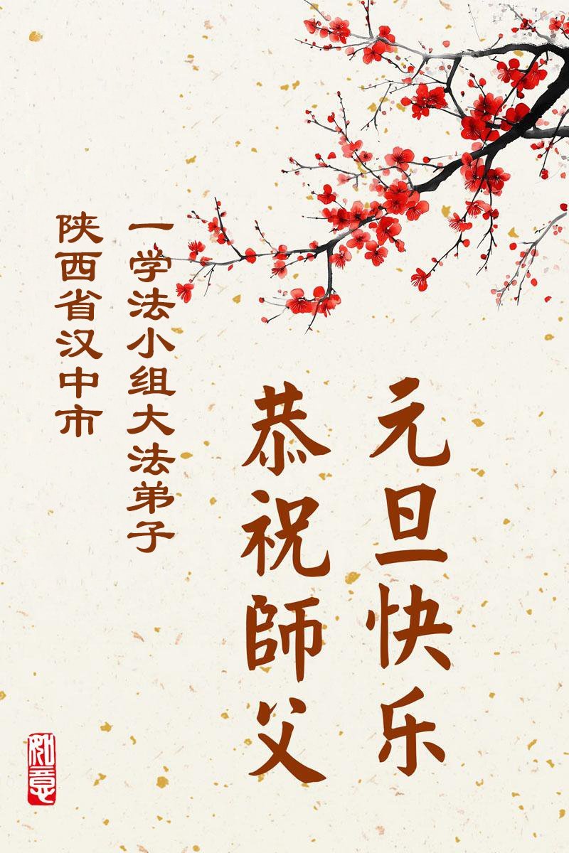 (Minghui.org) Zu Neujahr senden Falun-Dafa-Praktizierende auf der ganzen Welt traditionell Neujahrsgrüße, Grußkarten, Gedichte und Fotos an die Minghui-Website. Damit wünschen sie ihrem verehrten Meister Li Hongzhi ein frohes neues Jahr und bringen dem Meister ihre Dankbarkeit für die barmherzige Errettung zum Ausdruck. Sie geloben, in ihrer Kultivierung fleißig voranzukommen und noch mehr Lebewesen zu erretten. Im Folgenden veröffentlichen wir einen Teil dieser Grüße aus Shanxi, Shaanxi und Gansu: