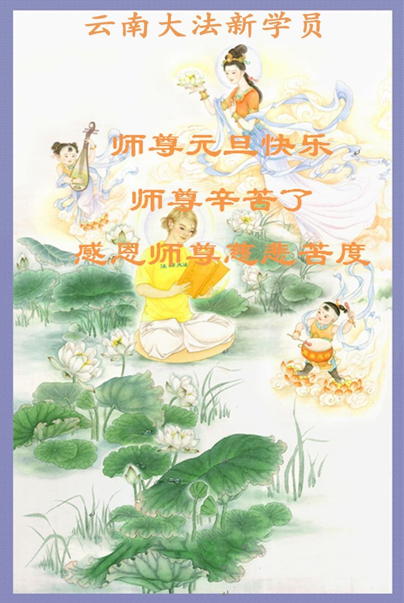 (Minghui.org) Zu Neujahr senden Falun-Dafa-Praktizierende auf der ganzen Welt traditionell Neujahrsgrüße, Grußkarten, Gedichte und Fotos an die Minghui-Website. Damit wünschen sie ihrem verehrten Meister Li Hongzhi ein frohes neues Jahr und bringen dem Meister ihre Dankbarkeit für die barmherzige Errettung zum Ausdruck. Sie geloben, in ihrer Kultivierung fleißig voranzukommen und noch mehr Lebewesen zu erretten. Im Folgenden veröffentlichen wir einen Teil dieser Grüße von Falun-Dafa-Praktizierenden, die erst kürzlich begonnen haben, sich zu kultivieren: