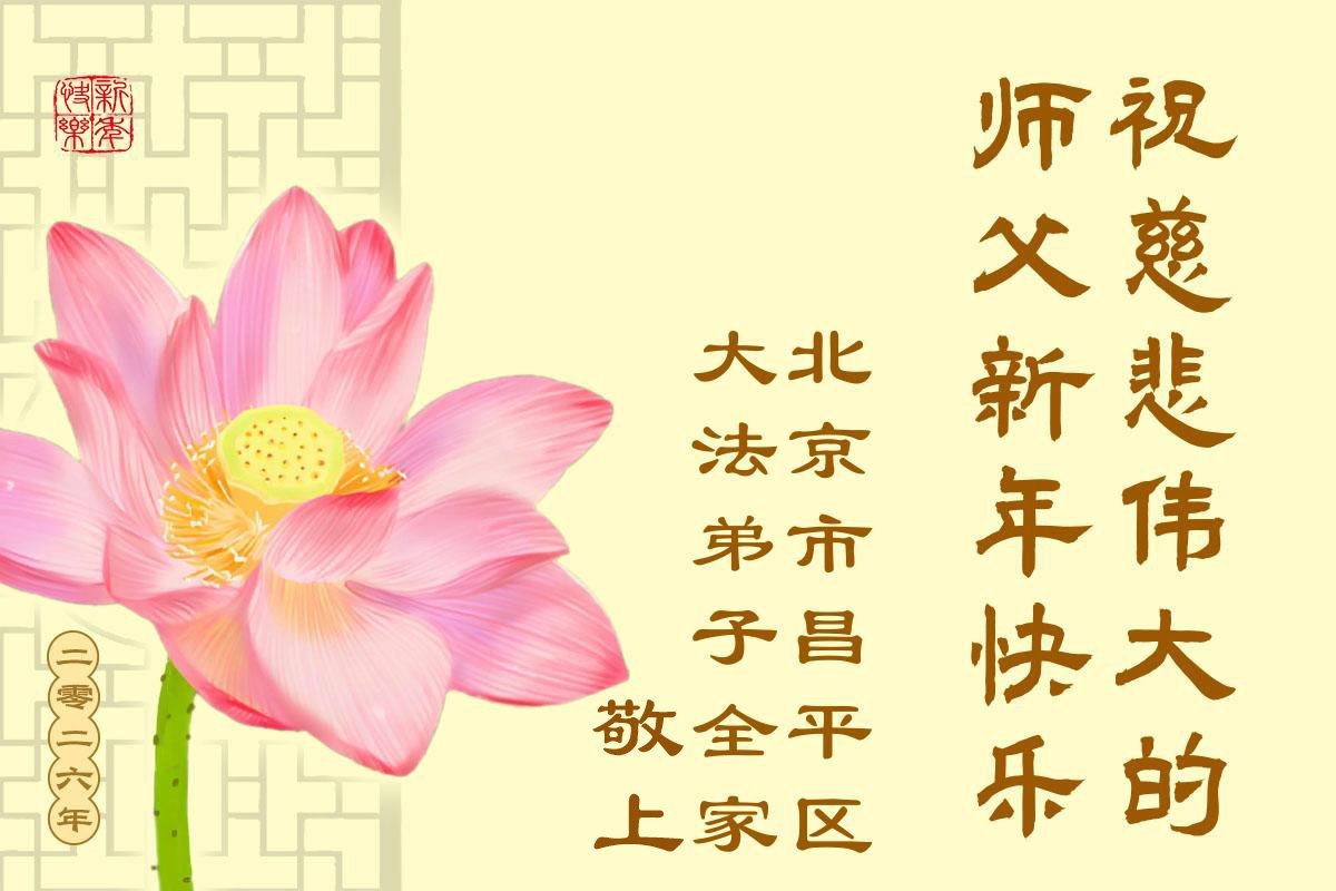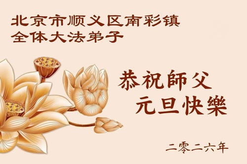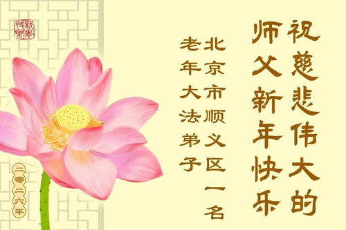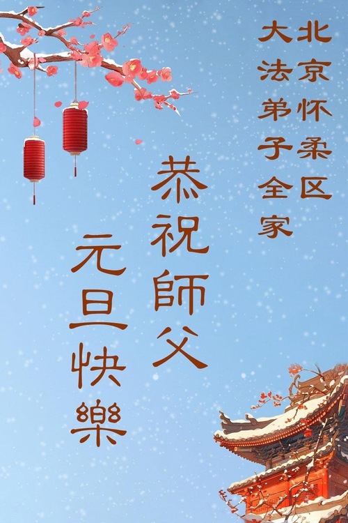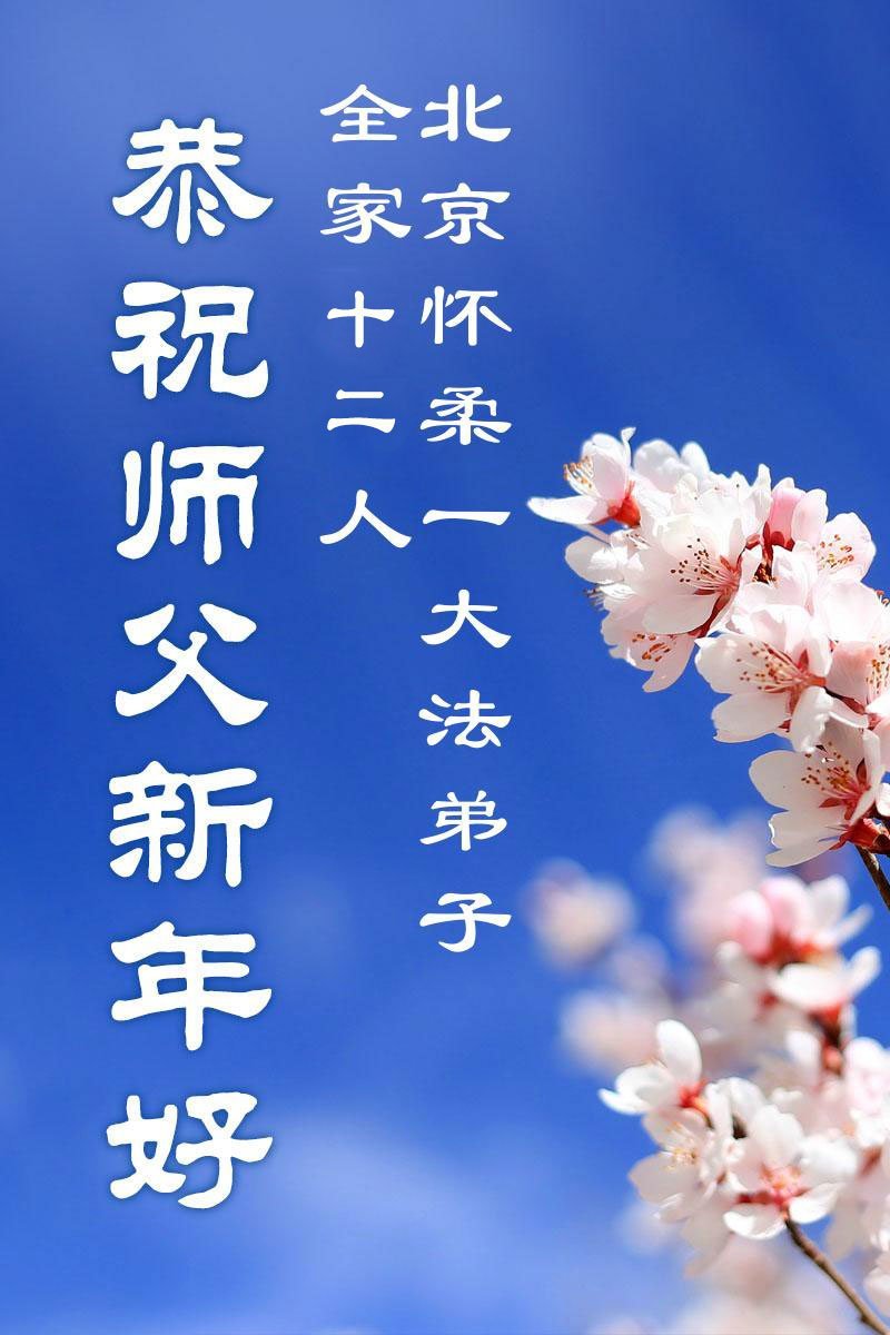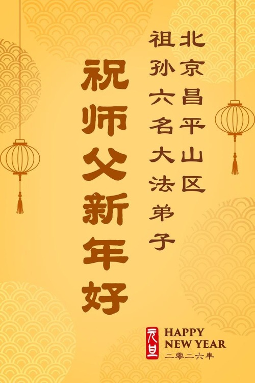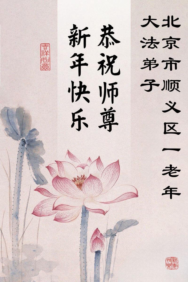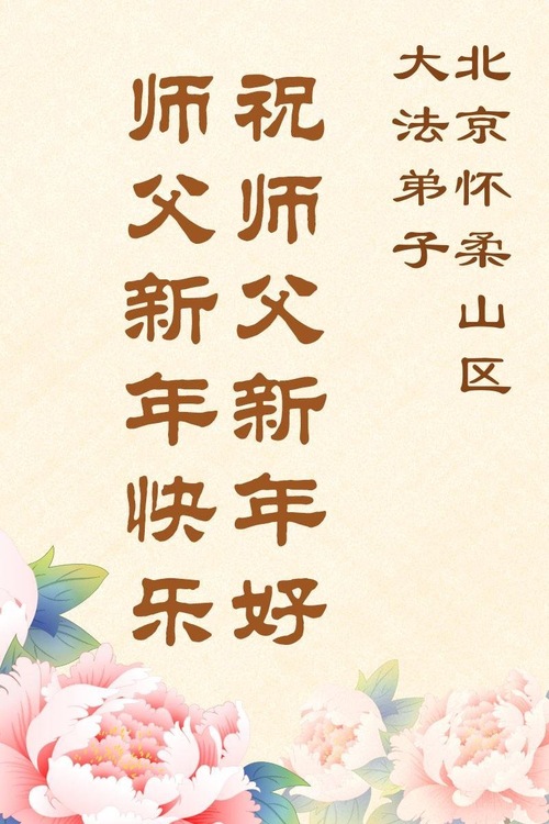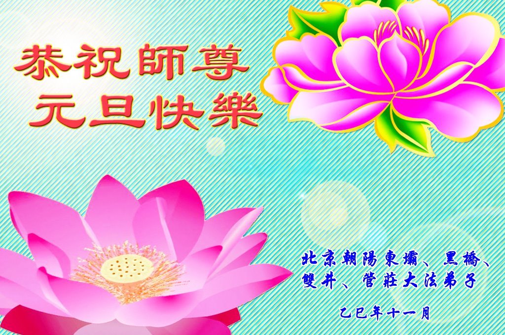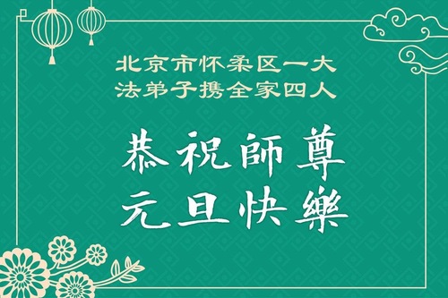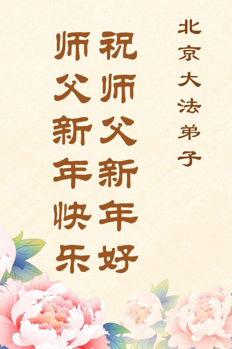 (Minghui.org) Zu Neujahr senden Falun-Dafa-Praktizierende auf der ganzen Welt traditionell Neujahrsgrüße, Grußkarten, Gedichte und Fotos an die Minghui-Website. Damit wünschen sie ihrem verehrten Meister Li Hongzhi ein frohes neues Jahr und bringen dem Meister ihre Dankbarkeit für die barmherzige Errettung zum Ausdruck. Sie geloben, in ihrer Kultivierung fleißig voranzukommen und noch mehr Lebewesen zu erretten. Im Folgenden veröffentlichen wir einen Teil dieser Grüße aus der chinesischen Hauptstadt Peking: