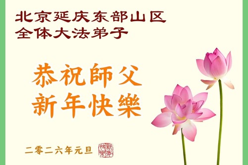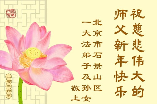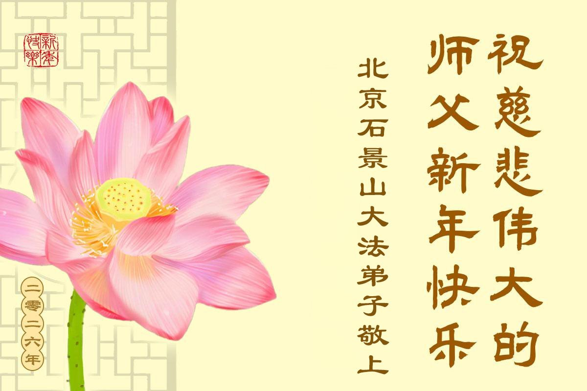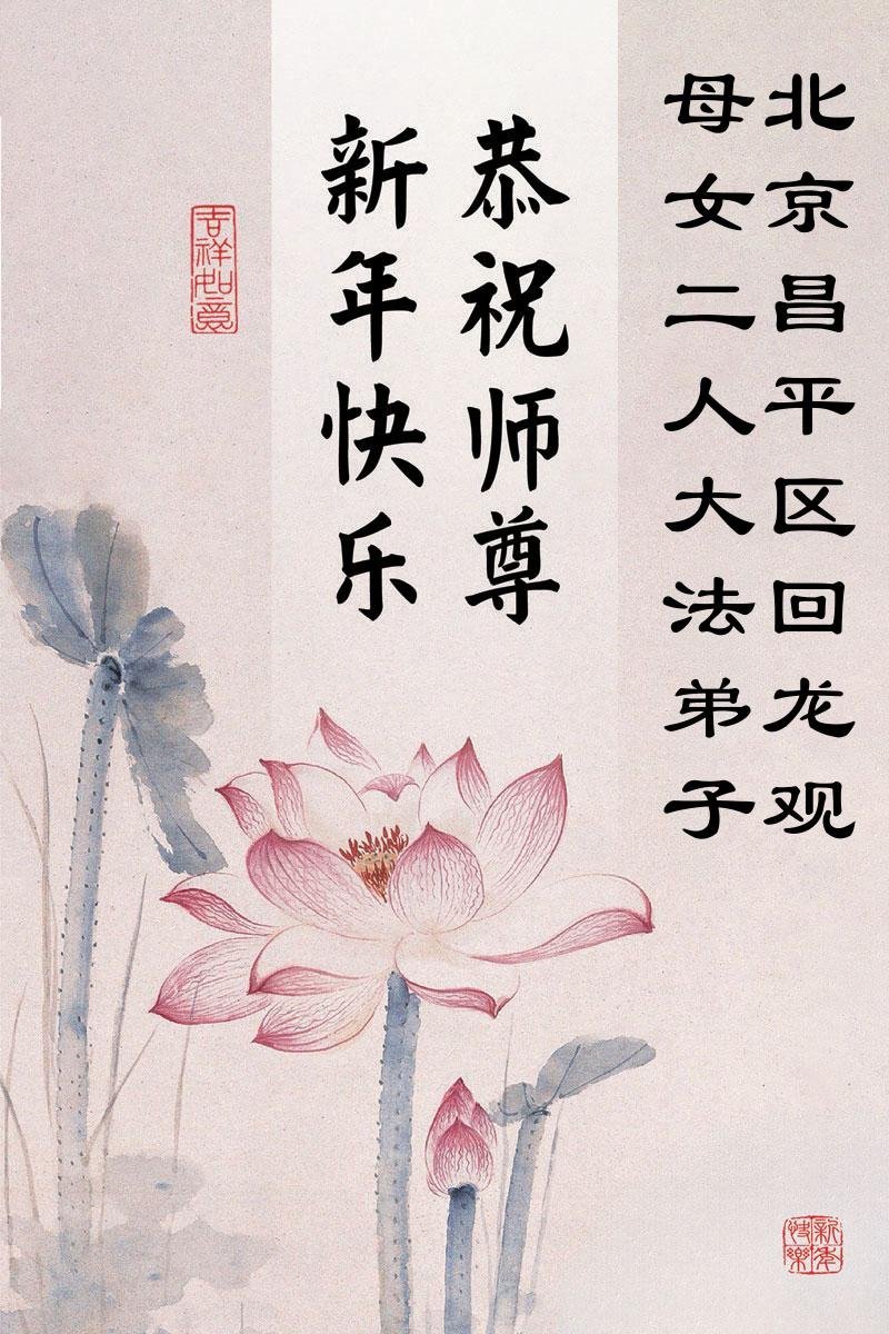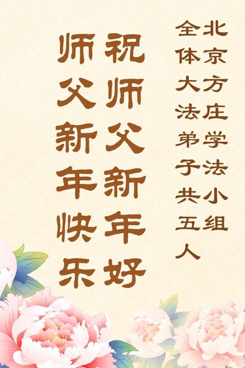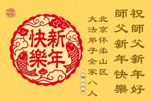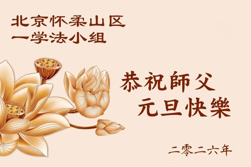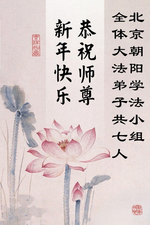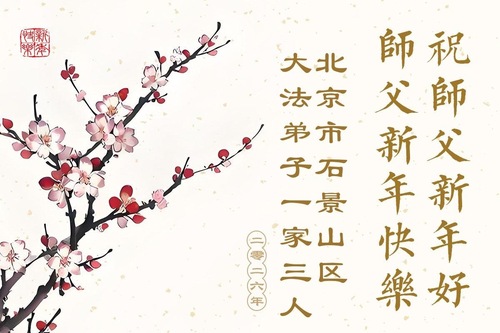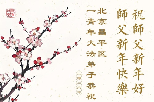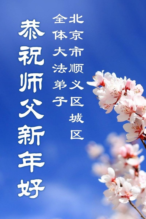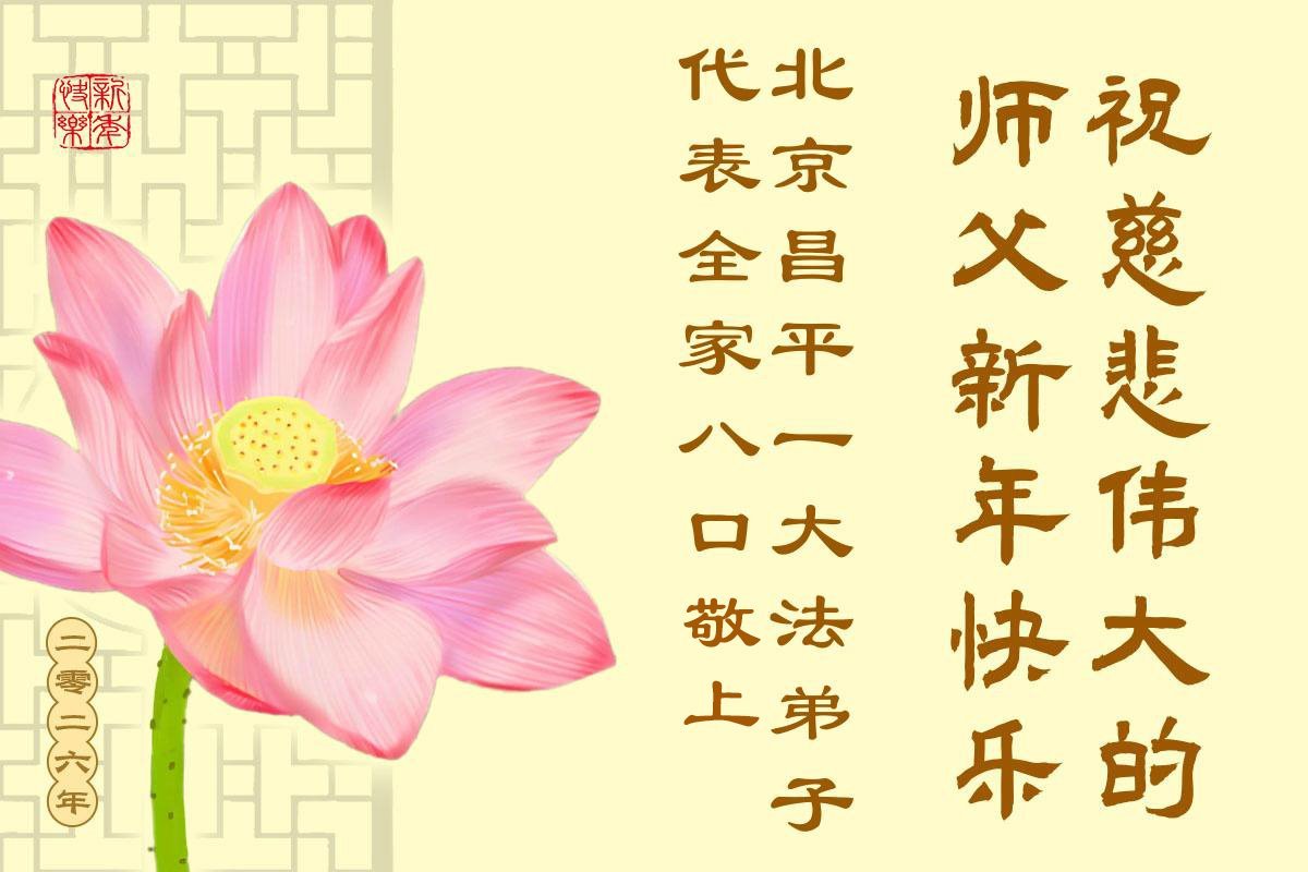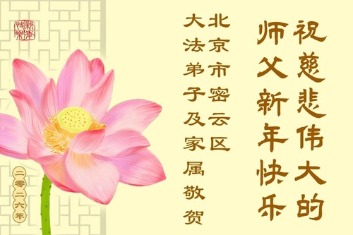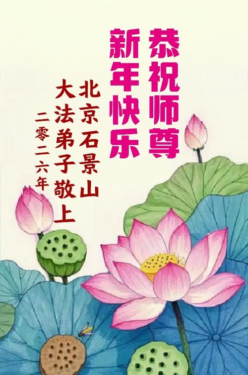 (Minghui.org) Zu Neujahr senden Falun-Dafa-Praktizierende auf der ganzen Welt traditionell Neujahrsgrüße, Grußkarten, Gedichte und Fotos an die Minghui-Website. Damit wünschen sie ihrem verehrten Meister Li Hongzhi ein frohes neues Jahr und bringen dem Meister ihre Dankbarkeit für die barmherzige Errettung zum Ausdruck. Sie geloben, in ihrer Kultivierung fleißig voranzukommen und noch mehr Lebewesen zu erretten. Im Folgenden veröffentlichen wir einen Teil dieser Grüße aus der chinesischen Hauptstadt Peking: