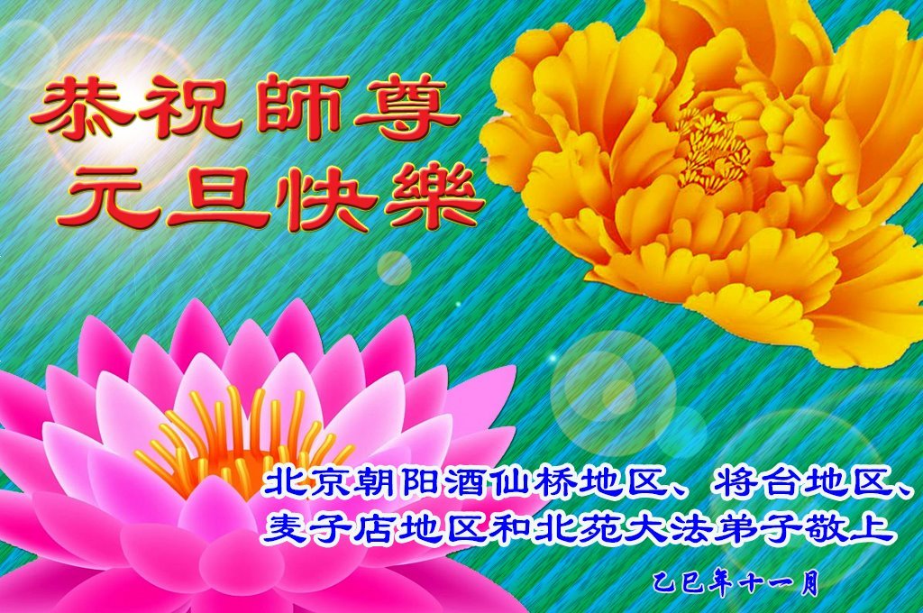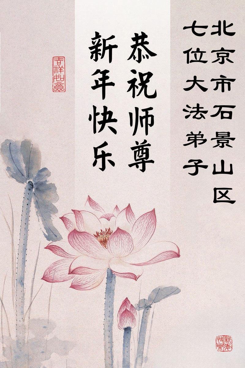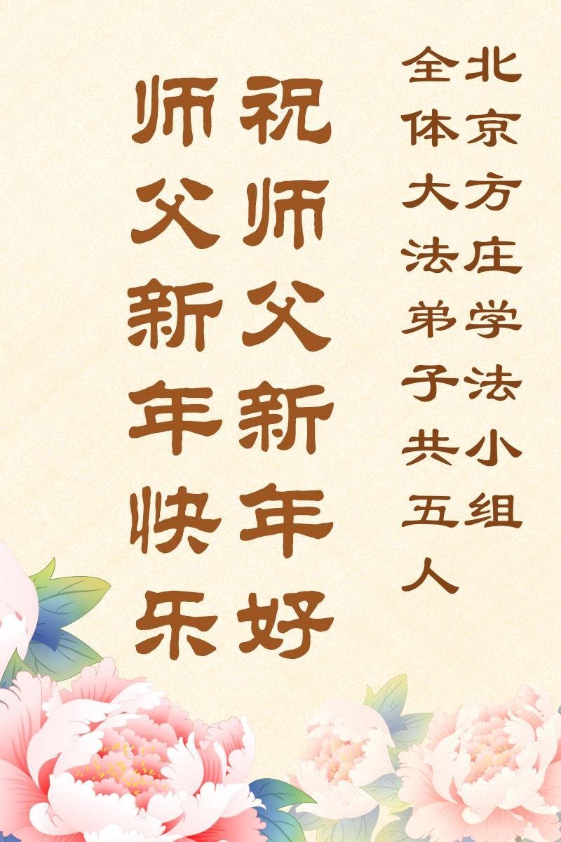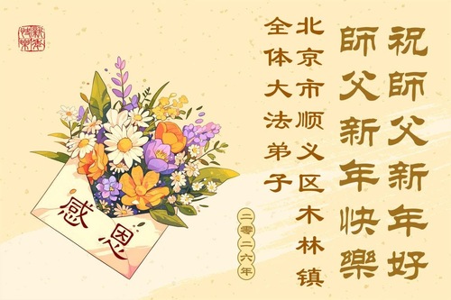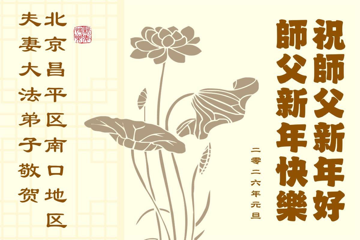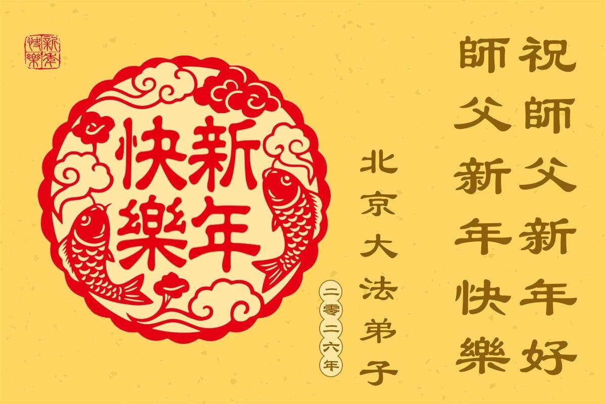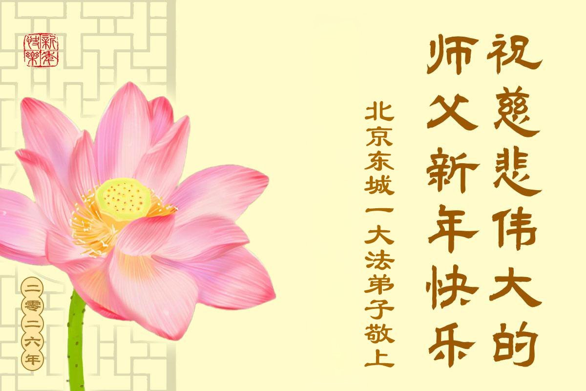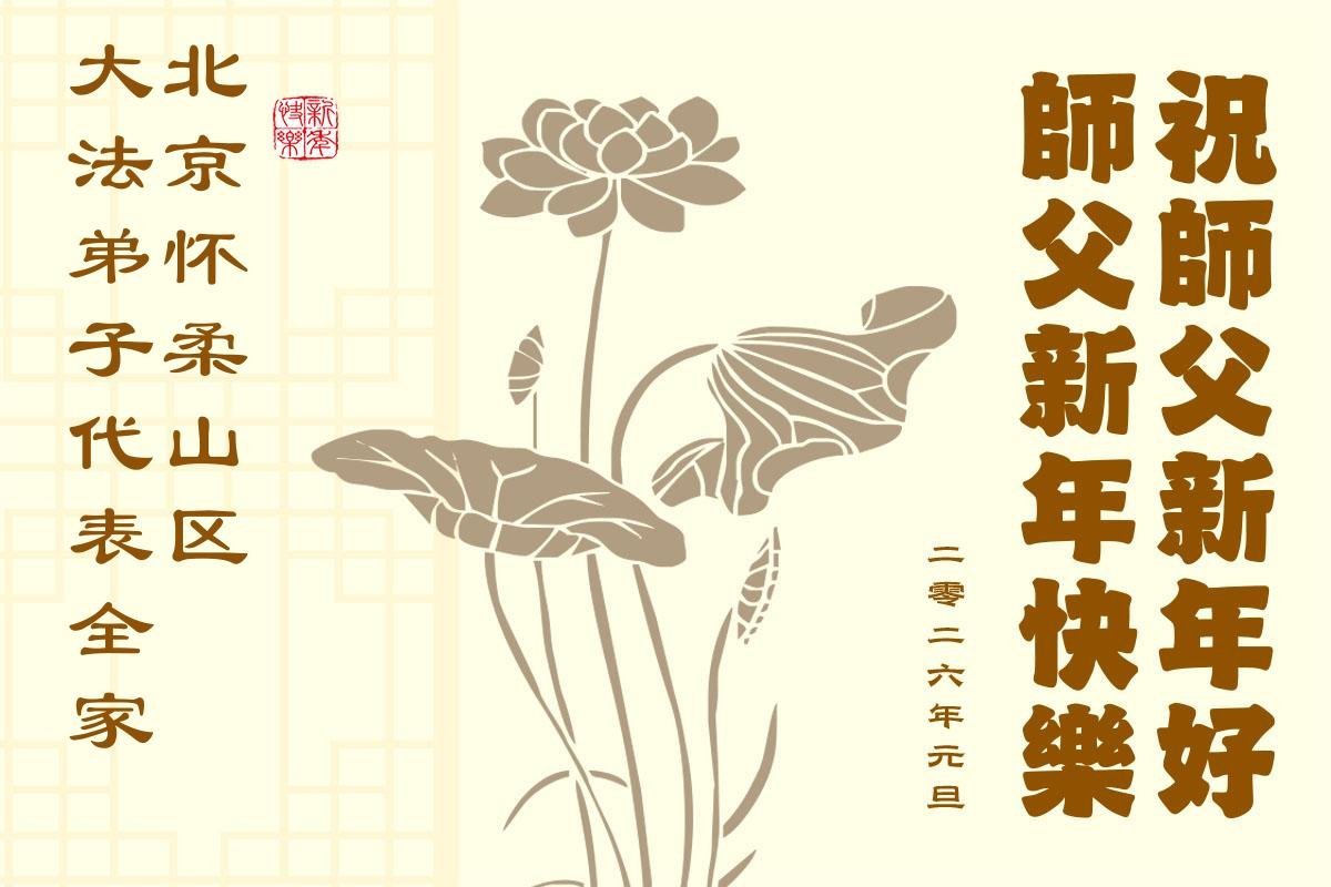 (Minghui.org) Zu Neujahr senden Falun-Dafa-Praktizierende auf der ganzen Welt traditionell Neujahrsgrüße, Grußkarten, Gedichte und Fotos an die Minghui-Website. Damit wünschen sie ihrem verehrten Meister Li Hongzhi ein frohes neues Jahr und bringen dem Meister ihre Dankbarkeit für die barmherzige Errettung zum Ausdruck. Sie geloben, in ihrer Kultivierung fleißig voranzukommen und noch mehr Lebewesen zu erretten. Im Folgenden veröffentlichen wir einen Teil dieser Grüße aus der chinesischen Hauptstadt Peking: