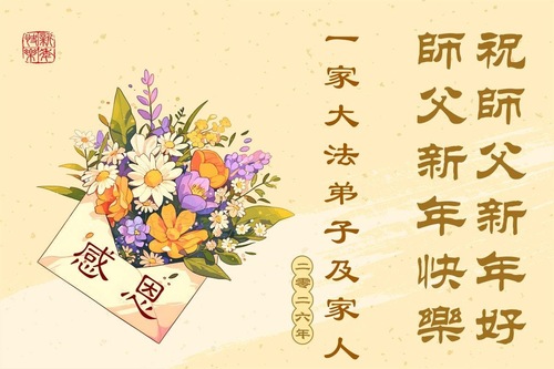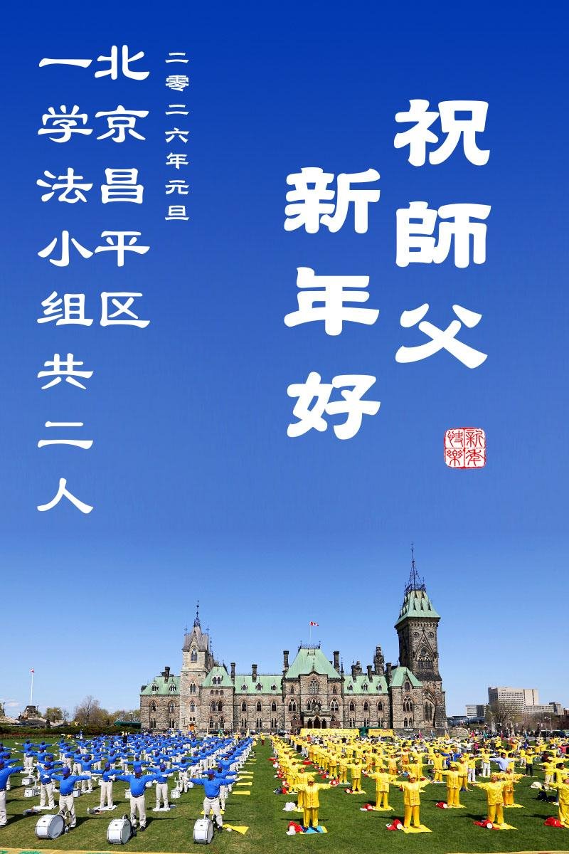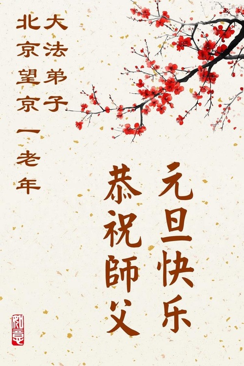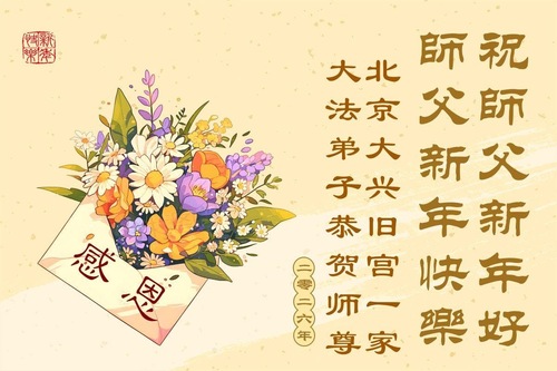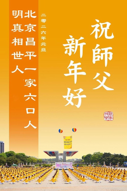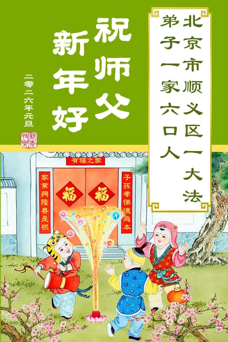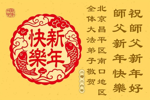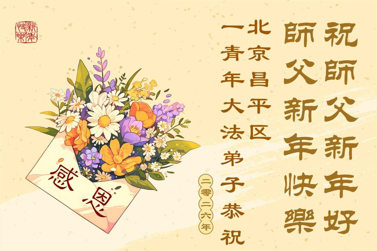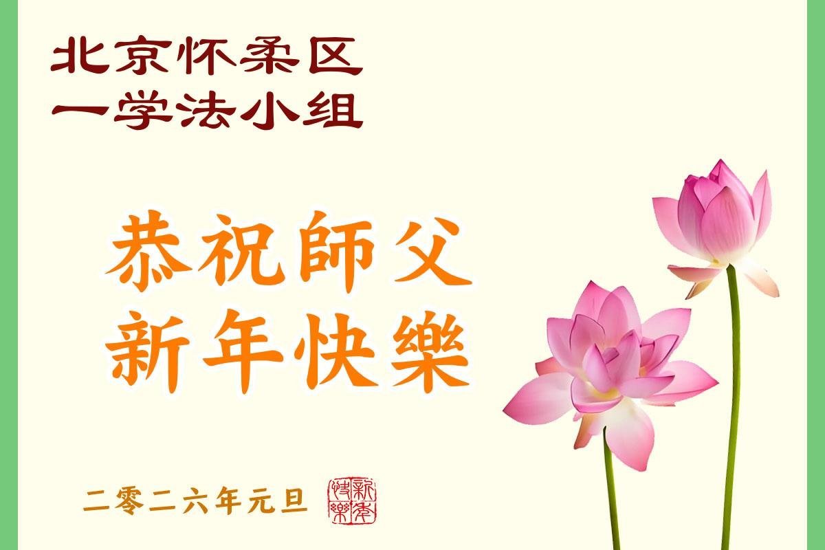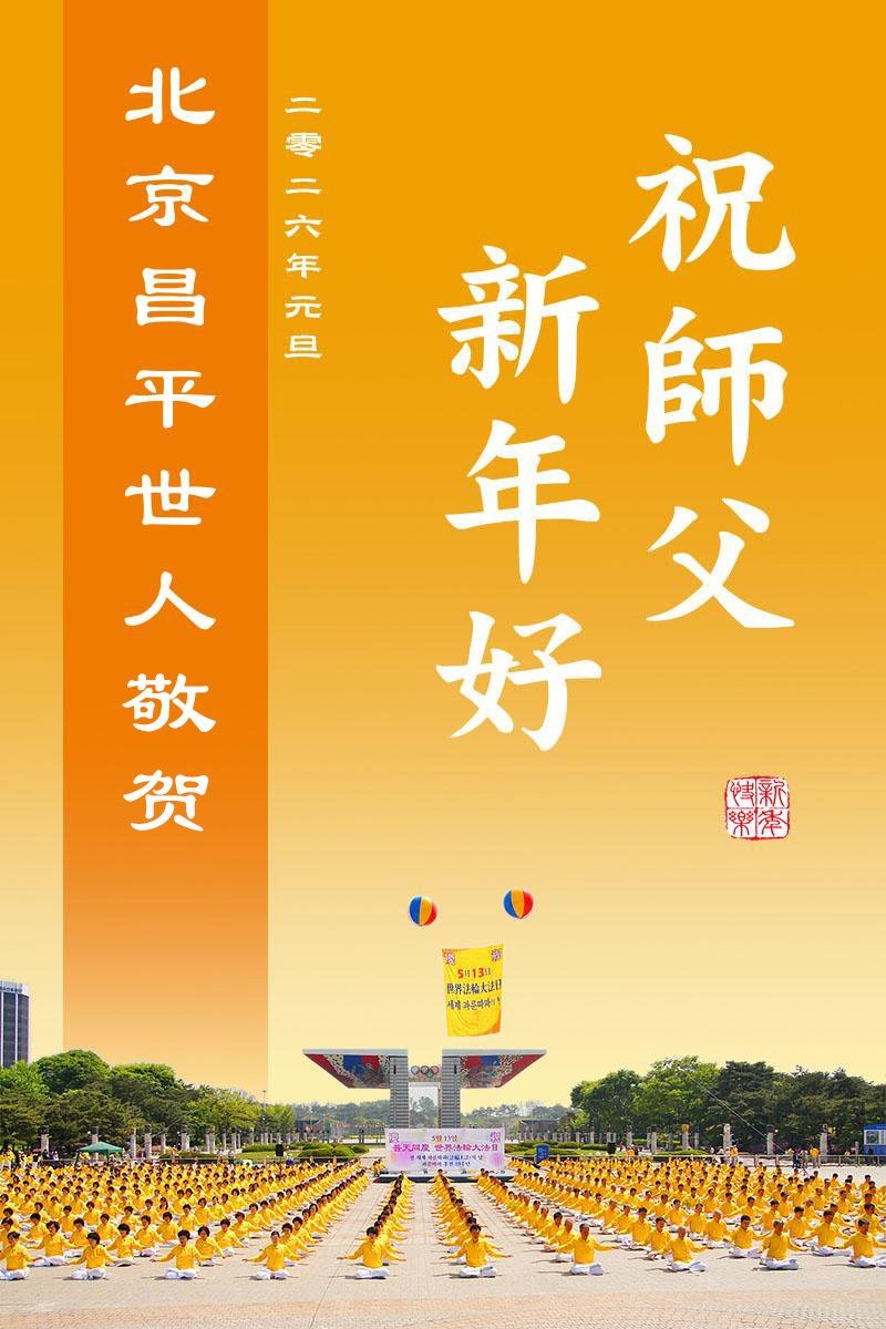 (Minghui.org) Zu Neujahr senden Falun-Dafa-Praktizierende auf der ganzen Welt traditionell Neujahrsgrüße, Grußkarten, Gedichte und Fotos an die Minghui-Website. Damit wünschen sie ihrem verehrten Meister Li Hongzhi ein frohes neues Jahr und bringen dem Meister ihre Dankbarkeit für die barmherzige Errettung zum Ausdruck. Sie geloben, in ihrer Kultivierung fleißig voranzukommen und noch mehr Lebewesen zu erretten. Im Folgenden veröffentlichen wir einen Teil dieser Grüße aus der chinesischen Hauptstadt Peking:
