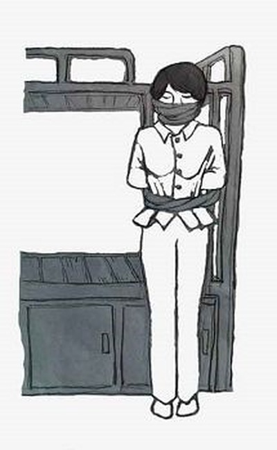 Folter-Illustration: Mit Zwangsjacke eingeschnürt