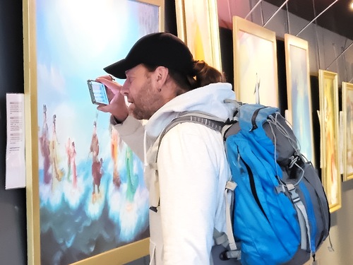 Auf die Frage, warum die Gemälde sie so tief berührten, erklärte Manuel, die Botschaft sei sehr eindringlich. „Sie repräsentiert den Geist – eine spirituelle Existenz jenseits des Bewusstseins.“ Er wollte ein Foto mit seinem Lieblingsgemälde machen, um dieses bewegende Erlebnis festzuhalten.
