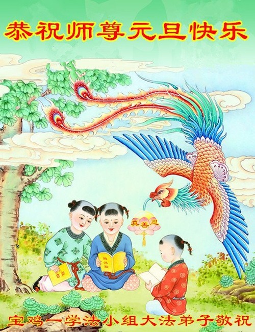 „Zum neuen Jahr werden wir uns dem Studium der Dafa-Lehre widmen, uns berichtigen, aufrichtige Gedanken aussenden und dem Meister helfen, Menschen zu erretten und uns so gemeinsam erhöhen. Wie lang dieser Weg auch sein mag und welchen Schwierigkeiten wir begegnen mögen, wir sind stets bereit, unser Bestes zu geben – denn wir sind Falun-Dafa-Praktizierende und dafür sind wir hier. Danke, Meister Li, wir wünschen Ihnen ein frohes neues Jahr!“