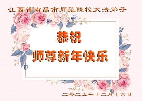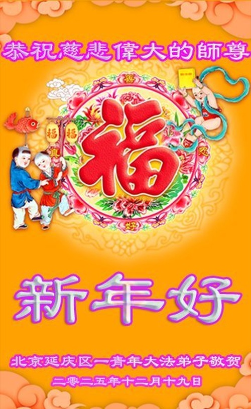 (Minghui.org) Zu Neujahr senden Falun-Dafa-Praktizierende auf der ganzen Welt traditionell Neujahrsgrüße, Grußkarten, Gedichte und Fotos an die Minghui-Website. Damit wünschen sie ihrem verehrten Meister Li Hongzhi ein frohes neues Jahr und bringen dem Meister gegenüber ihre Dankbarkeit für die barmherzige Errettung zum Ausdruck. Sie geloben, in ihrer Kultivierung fleißig voranzukommen und noch mehr Lebewesen zu erretten.