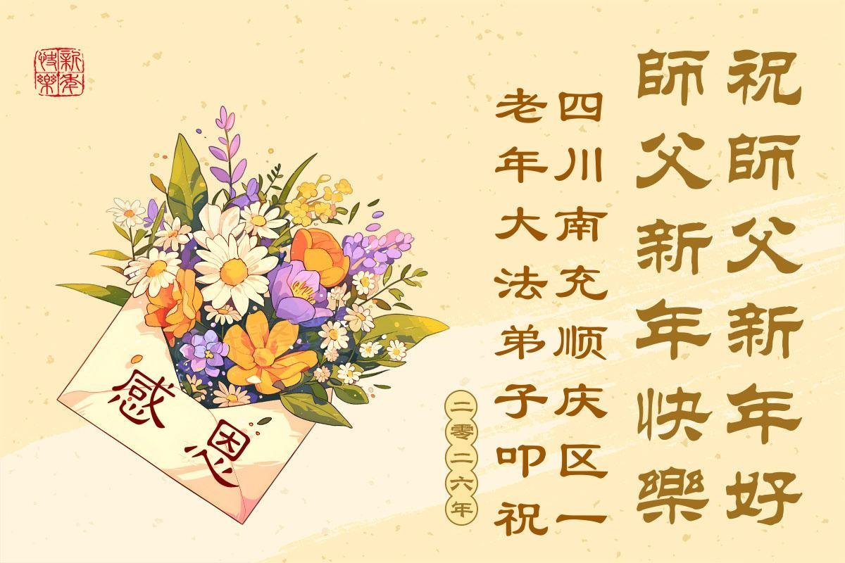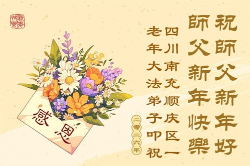 (Minghui.org) Zu Neujahr senden Falun-Dafa-Praktizierende auf der ganzen Welt traditionell Neujahrsgrüße, Grußkarten, Gedichte und Fotos an die Minghui-Website. Damit wünschen sie ihrem verehrten Meister Li Hongzhi ein frohes neues Jahr und bringen dem Meister ihre Dankbarkeit für die barmherzige Errettung zum Ausdruck. Sie geloben, in ihrer Kultivierung fleißig voranzukommen und noch mehr Lebewesen zu erretten.