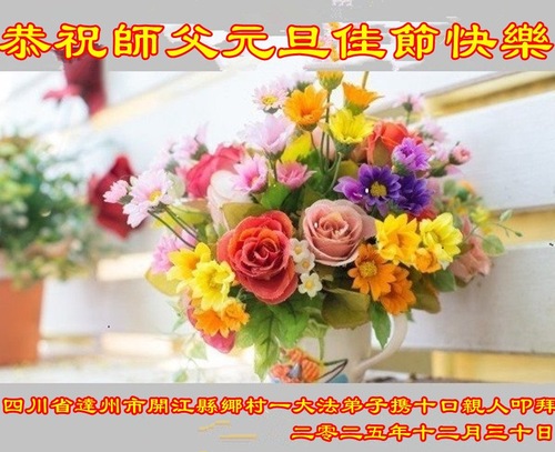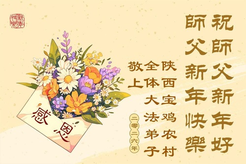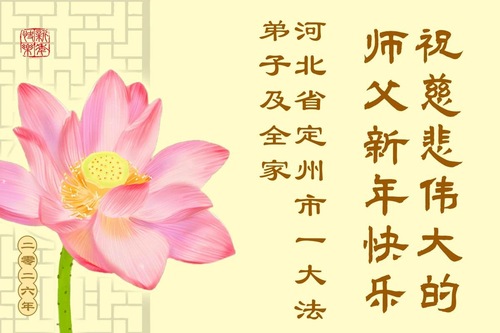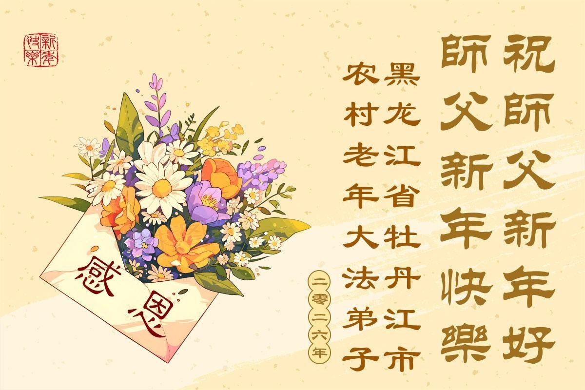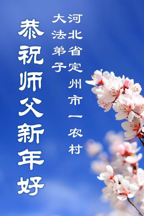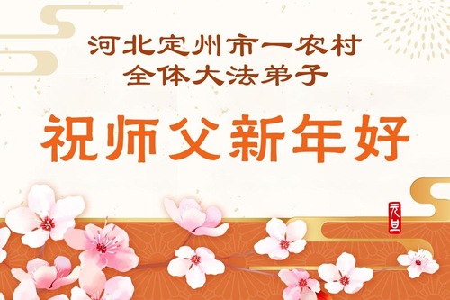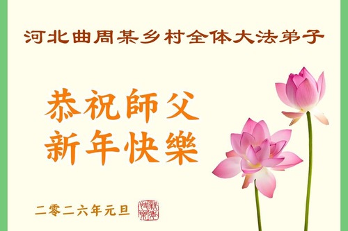 (Minghui.org) Zu Neujahr senden Falun-Dafa-Praktizierende auf der ganzen Welt traditionell Neujahrsgrüße, Grußkarten, Gedichte und Fotos an die Minghui-Website. Damit wünschen sie ihrem verehrten Meister Li Hongzhi ein frohes neues Jahr und bringen dem Meister ihre Dankbarkeit für die barmherzige Errettung zum Ausdruck. Sie geloben, in ihrer Kultivierung fleißig voranzukommen und noch mehr Lebewesen zu erretten. Im Folgenden veröffentlichen wir einen Teil dieser Grüße aus chinesischen Dörfern: