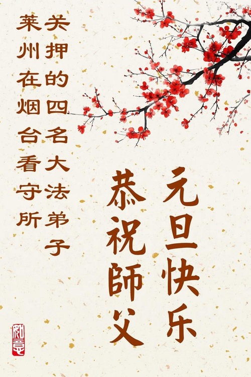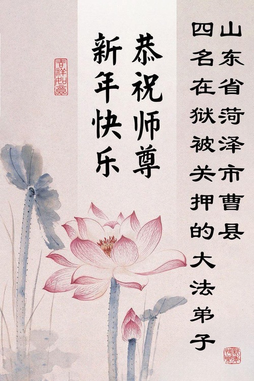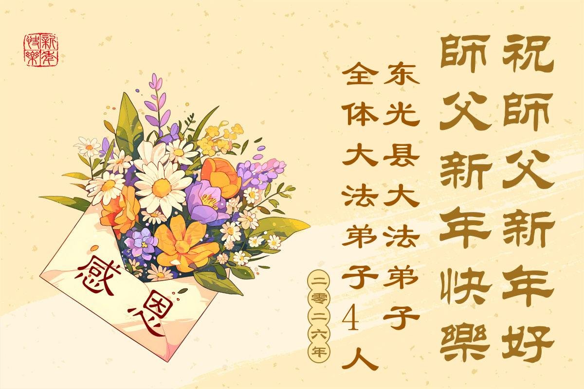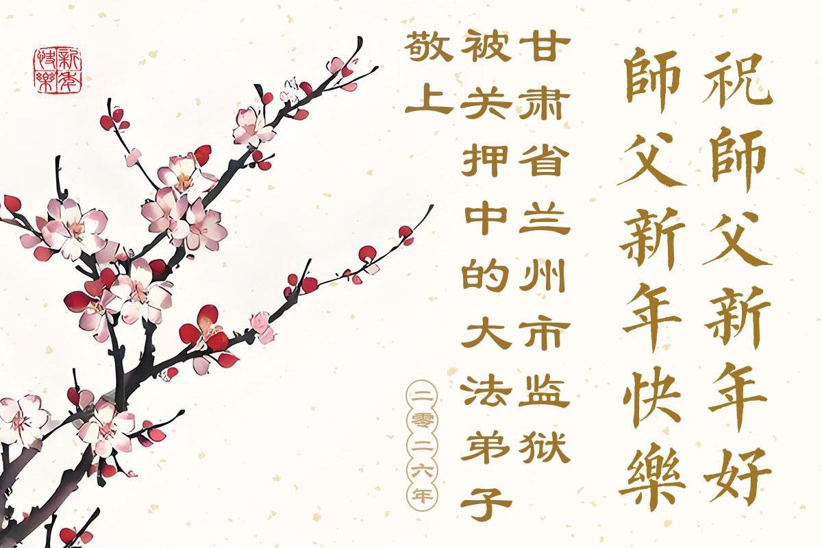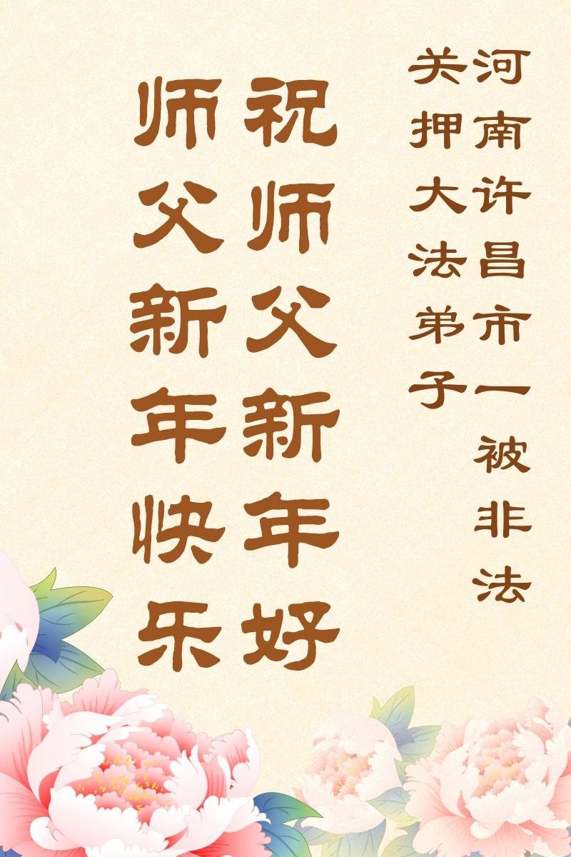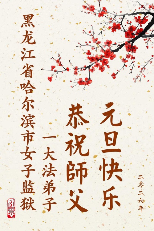 (Minghui.org) Zu Neujahr senden Falun-Dafa-Praktizierende auf der ganzen Welt traditionell Neujahrsgrüße, Grußkarten, Gedichte und Fotos an die Minghui-Website. Damit wünschen sie ihrem verehrten Meister Li Hongzhi ein frohes neues Jahr und bringen dem Meister ihre Dankbarkeit für die barmherzige Errettung zum Ausdruck. Sie geloben, in ihrer Kultivierung fleißig voranzukommen und noch mehr Lebewesen zu erretten. Im Folgenden veröffentlichen wir einen Teil dieser Grüße aus chinesischen Haftanstalten: