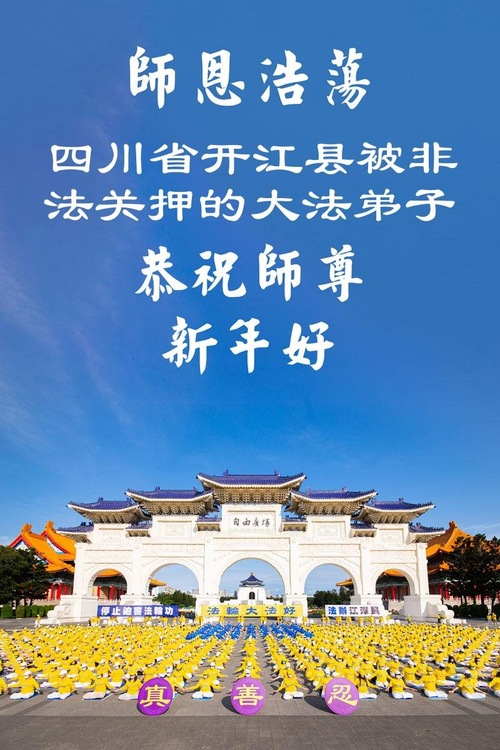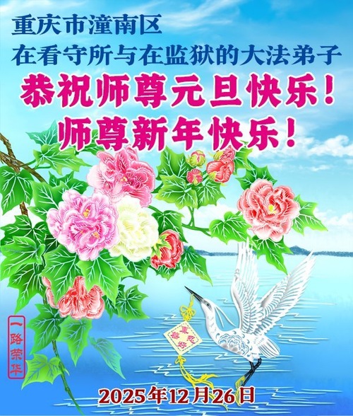 Leider wird so eine gute Kultivierungspraxis von der bösartigen Kommunistischen Partei Chinas wahnsinnig unterdrückt, so dass meine Frau mehrmals entführt, inhaftiert und verurteilt wurde. Sie wurde gefoltert und gequält, weil sie im Gefängnis ihren Glauben nicht aufgeben wollte. Ich bewundere sie, unterstütze sie aus tiefstem Herzen und mache mir große Sorgen um sie. Anlässlich des neuen Jahres 2026 wünschen meine Frau im Gefängnis und ich dem barmherzigen und großartigen Meister ein frohes neues Jahr!“