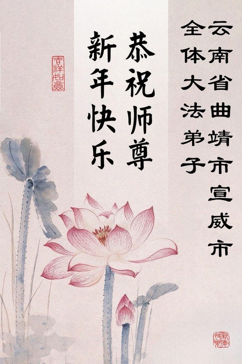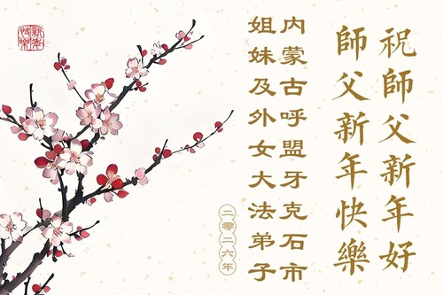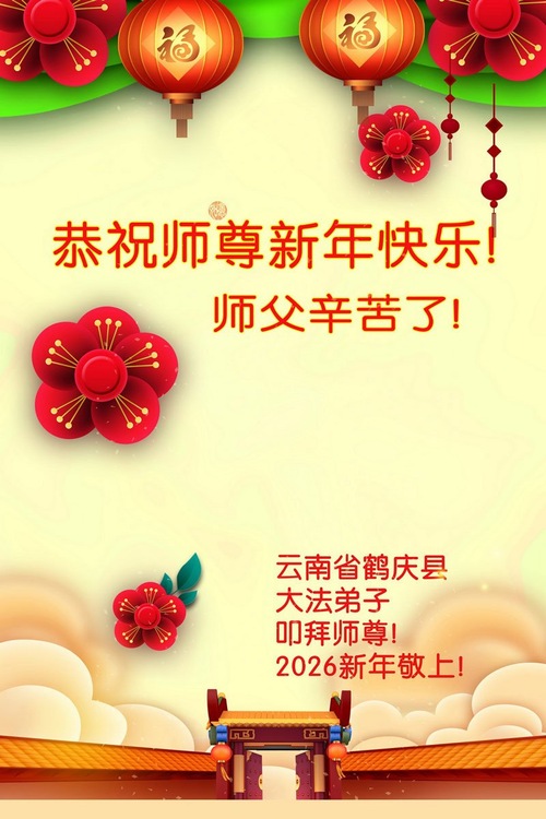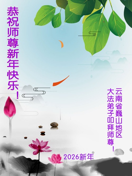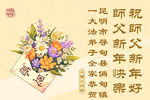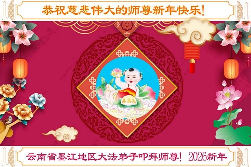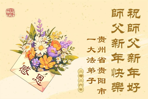 (Minghui.org) Zu Neujahr senden Falun-Dafa-Praktizierende auf der ganzen Welt traditionell Neujahrsgrüße, Grußkarten, Gedichte und Fotos an die Minghui-Website. Damit wünschen sie ihrem verehrten Meister Li Hongzhi ein frohes neues Jahr und bringen dem Meister ihre Dankbarkeit für die barmherzige Errettung zum Ausdruck. Sie geloben, in ihrer Kultivierung fleißig voranzukommen und noch mehr Lebewesen zu erretten. Im Folgenden veröffentlichen wir einen Teil dieser Grüße aus Guizhou, in der Inneren Mongolai, Xinjiang, Yunan, Qinghai und Ningxia: