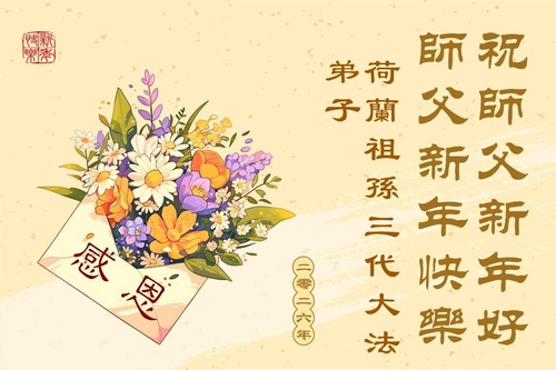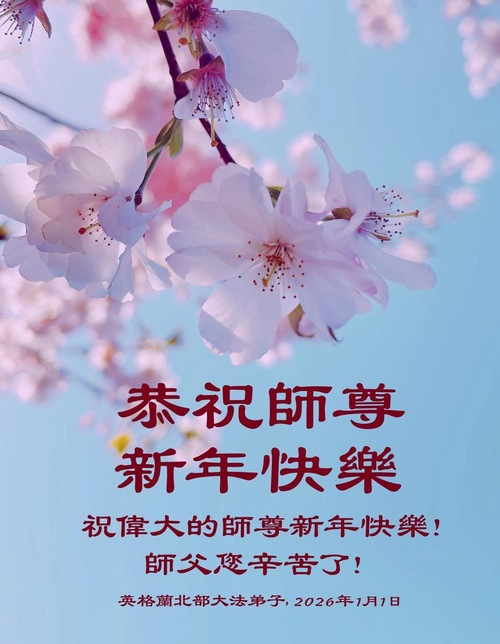 (Minghui.org) Zu Neujahr senden Falun-Dafa-Praktizierende auf der ganzen Welt traditionell Neujahrsgrüße, Grußkarten, Gedichte und Fotos an die Minghui-Website. Damit wünschen sie ihrem verehrten Meister Li Hongzhi ein frohes neues Jahr und bringen dem Meister ihre Dankbarkeit für die barmherzige Errettung zum Ausdruck. Sie geloben, in ihrer Kultivierung fleißig voranzukommen und noch mehr Lebewesen zu erretten. Im Folgenden veröffentlichen wir einen Teil dieser Grüße aus sechs westeuropäischen Ländern: