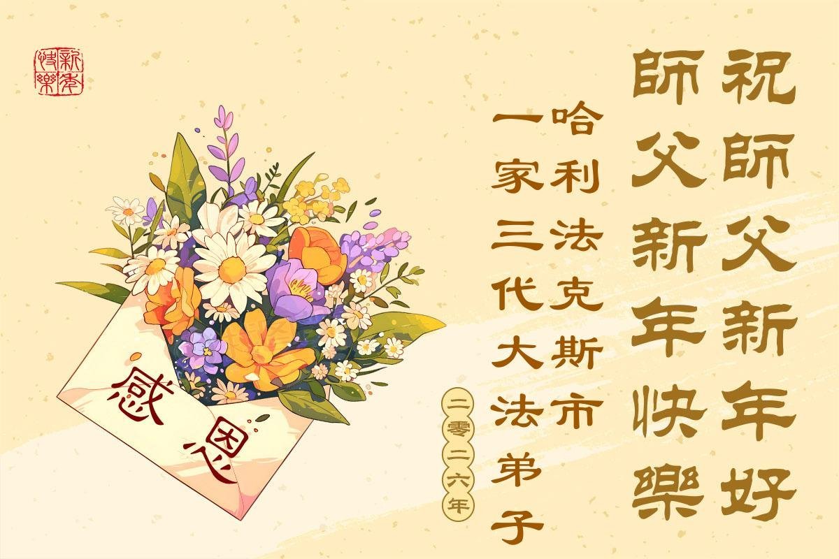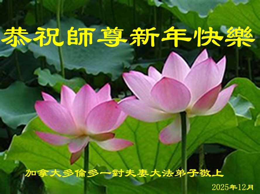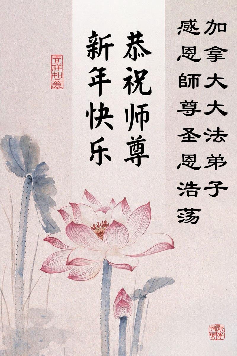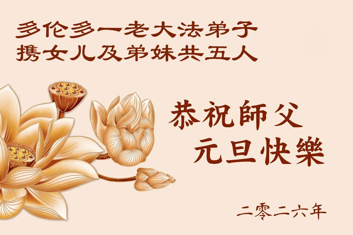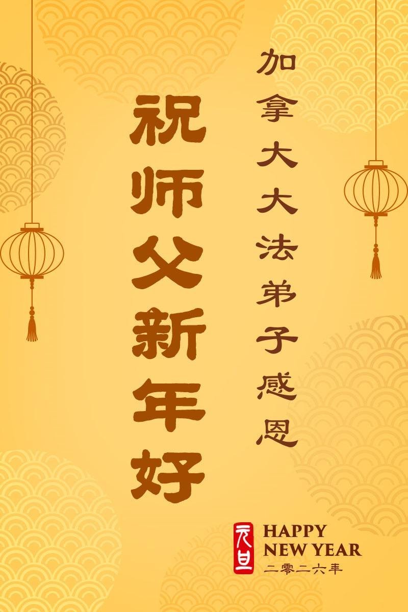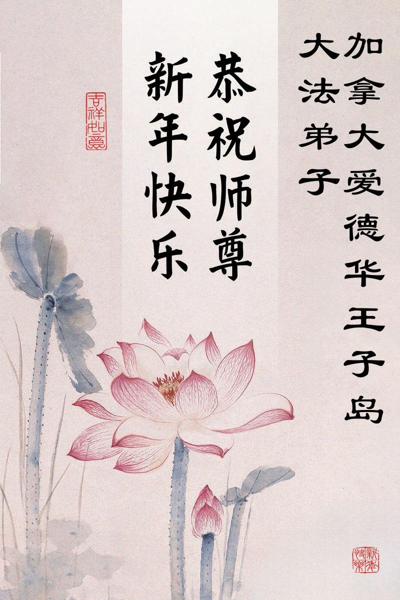(Minghui.org) Zu Neujahr senden Falun-Dafa-Praktizierende auf der ganzen Welt traditionell Neujahrsgrüße, Grußkarten, Gedichte und Fotos an die Minghui-Website. Damit wünschen sie ihrem verehrten Meister Li Hongzhi ein frohes neues Jahr und bringen dem Meister ihre Dankbarkeit für die barmherzige Errettung zum Ausdruck. Sie geloben, in ihrer Kultivierung fleißig voranzukommen und noch mehr Lebewesen zu erretten. Im Folgenden veröffentlichen wir einen Teil dieser Grüße aus Kanada: