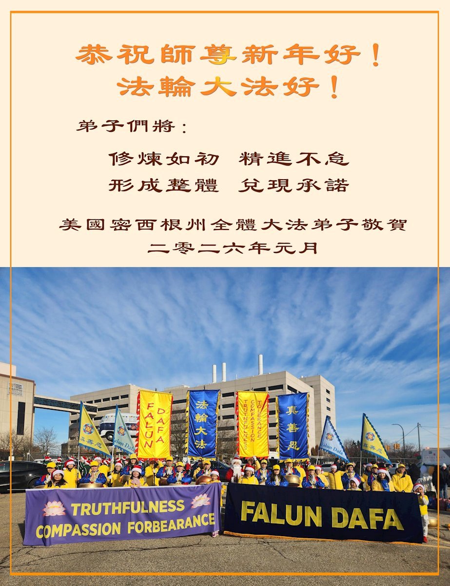 Falun-Dafa-Praktizierende in der Mitte der USA wünschen dem verehrten Meister respektvoll ein frohes neues Jahr