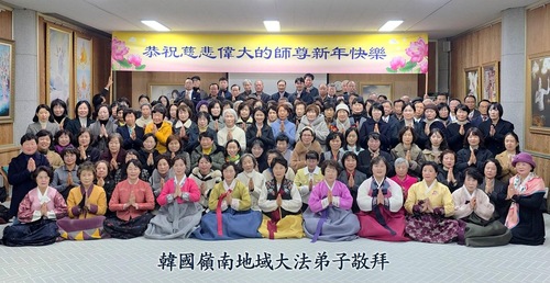 Falun-Dafa-Praktizierende in mehreren Regionen in Südkorea wünschen dem verehrten Meister respektvoll ein frohes neues Jahr