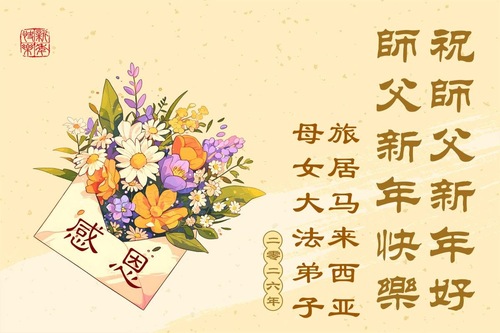 (Minghui.org) Zu Neujahr senden Falun-Dafa-Praktizierende auf der ganzen Welt traditionell Neujahrsgrüße, Grußkarten, Gedichte und Fotos an die Minghui-Website. Damit wünschen sie ihrem verehrten Meister Li Hongzhi ein frohes neues Jahr und bringen dem Meister ihre Dankbarkeit für die barmherzige Errettung zum Ausdruck. Sie geloben, in ihrer Kultivierung fleißig voranzukommen und noch mehr Lebewesen zu erretten. Im Folgenden veröffentlichen wir einen Teil dieser Grüße aus sechs asiatischen Ländern: