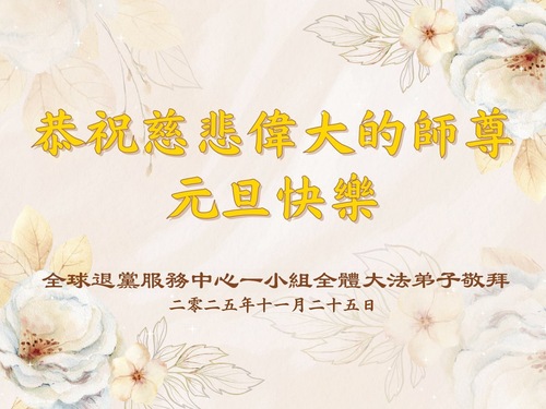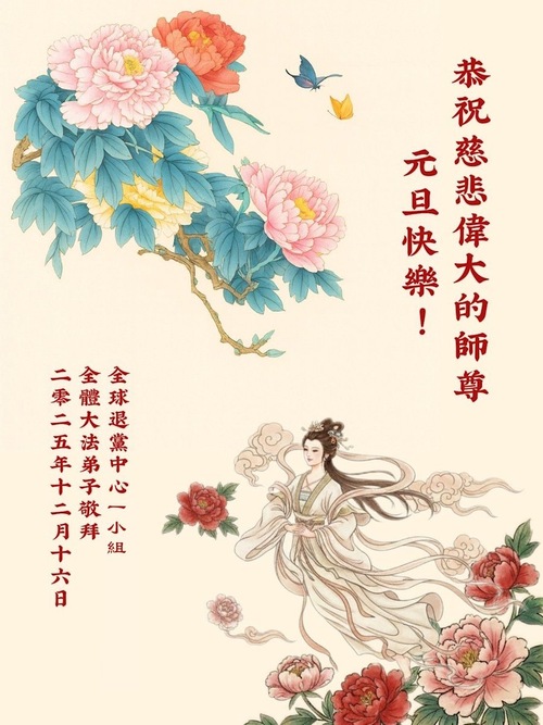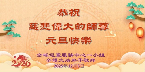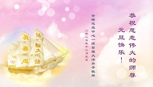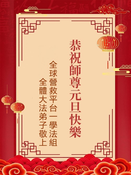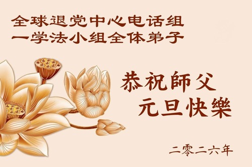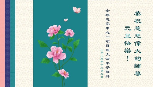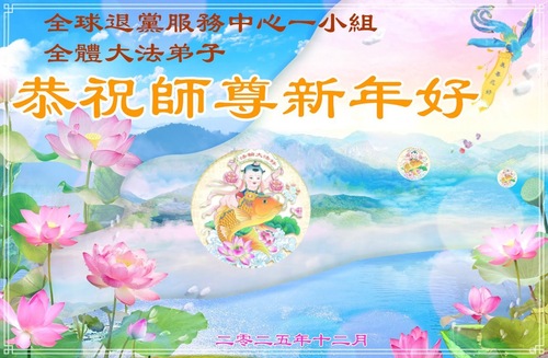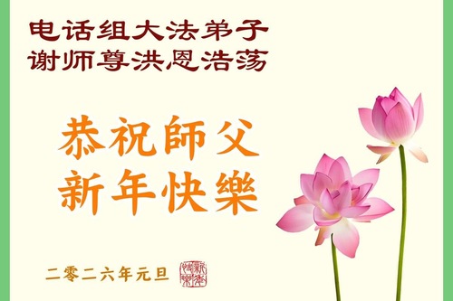 (Minghui.org) Zu Neujahr senden Falun-Dafa-Praktizierende auf der ganzen Welt traditionell Neujahrsgrüße, Grußkarten, Gedichte und Fotos an die Minghui-Website. Damit wünschen sie ihrem verehrten Meister Li Hongzhi ein frohes neues Jahr und bringen dem Meister ihre Dankbarkeit für die barmherzige Errettung zum Ausdruck. Sie geloben, in ihrer Kultivierung fleißig voranzukommen und noch mehr Lebewesen zu erretten. Im Folgenden veröffentlichen wir einen Teil dieser Grüße von außerhalb Chinas: