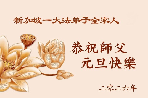(Minghui.org) Zu Neujahr senden Falun-Dafa-Praktizierende auf der ganzen Welt traditionell Neujahrsgrüße, Grußkarten, Gedichte und Fotos an die Minghui-Website. Damit wünschen sie ihrem verehrten Meister Li Hongzhi ein frohes neues Jahr und bringen dem Meister ihre Dankbarkeit für die barmherzige Errettung zum Ausdruck. Sie geloben, in ihrer Kultivierung fleißig voranzukommen und noch mehr Lebewesen zu erretten. Im Folgenden veröffentlichen wir einen Teil dieser Grüße aus Singapur, Vietnam, Thailand und die Philippinen: