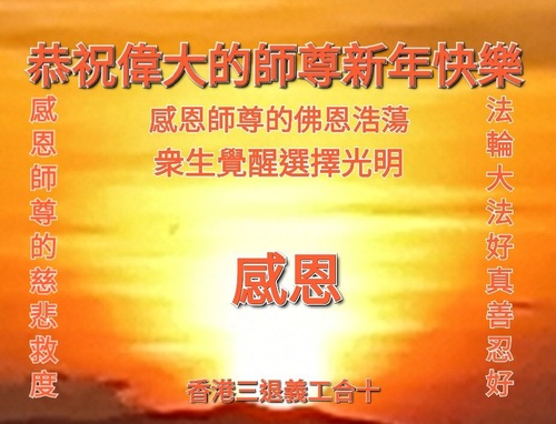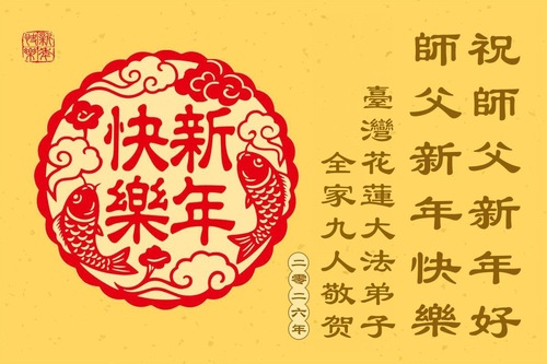 (Minghui.org) Zu Neujahr senden Falun-Dafa-Praktizierende auf der ganzen Welt traditionell Neujahrsgrüße, Grußkarten, Gedichte und Fotos an die Minghui-Website. Damit wünschen sie ihrem verehrten Meister Li Hongzhi ein frohes neues Jahr und bringen dem Meister ihre Dankbarkeit für die barmherzige Errettung zum Ausdruck. Sie geloben, in ihrer Kultivierung fleißig voranzukommen und noch mehr Lebewesen zu erretten. Im Folgenden veröffentlichen wir einen Teil dieser Grüße aus Taiwan und Hongkong: