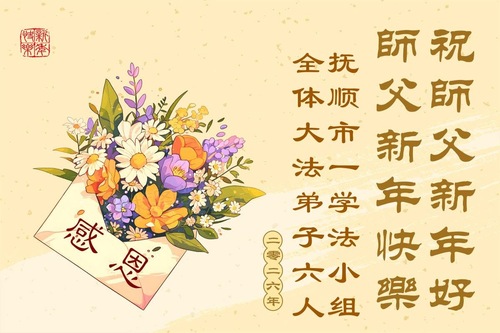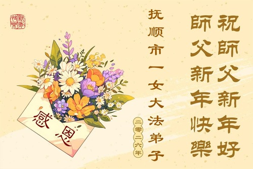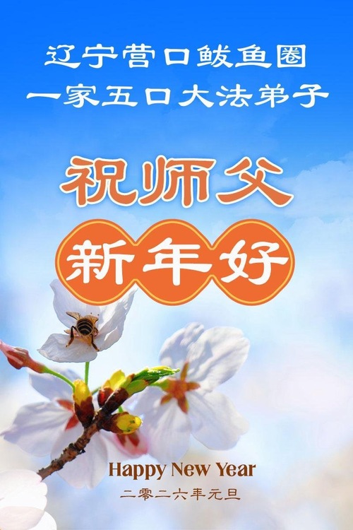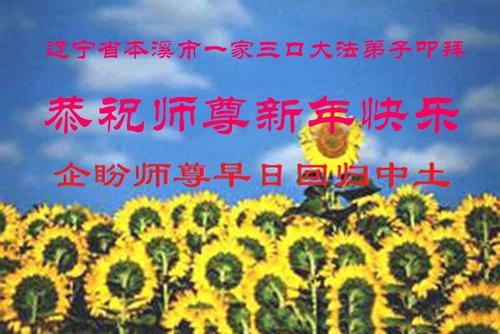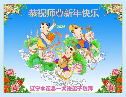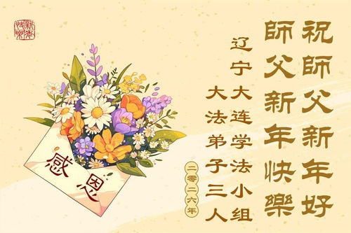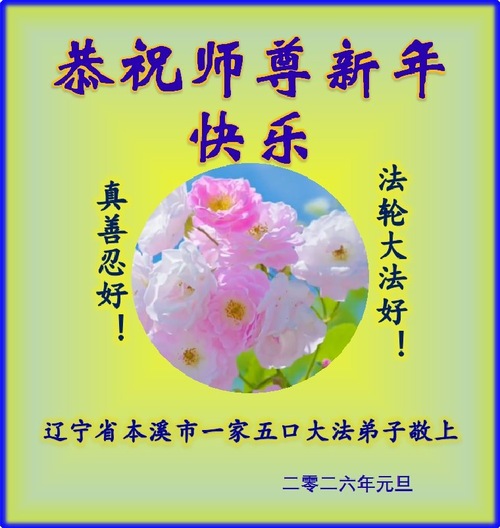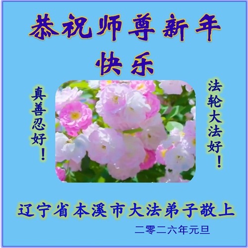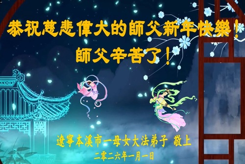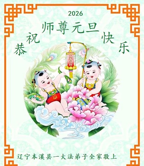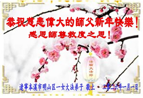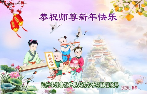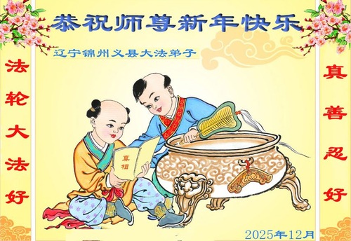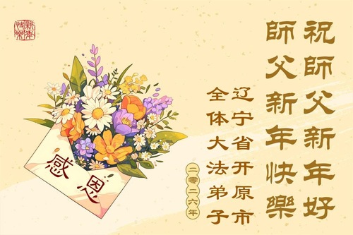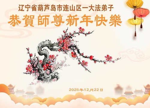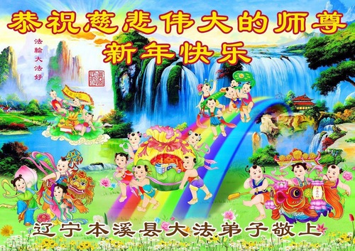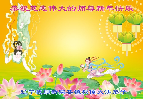 (Minghui.org) Zu Neujahr senden Falun-Dafa-Praktizierende auf der ganzen Welt traditionell Neujahrsgrüße, Grußkarten, Gedichte und Fotos an die Minghui-Website. Damit wünschen sie ihrem verehrten Meister Li Hongzhi ein frohes neues Jahr und bringen dem Meister ihre Dankbarkeit für die barmherzige Errettung zum Ausdruck. Sie geloben, in ihrer Kultivierung fleißig voranzukommen und noch mehr Lebewesen zu erretten. Im Folgenden veröffentlichen wir einen Teil dieser Grüße aus Liaoning: